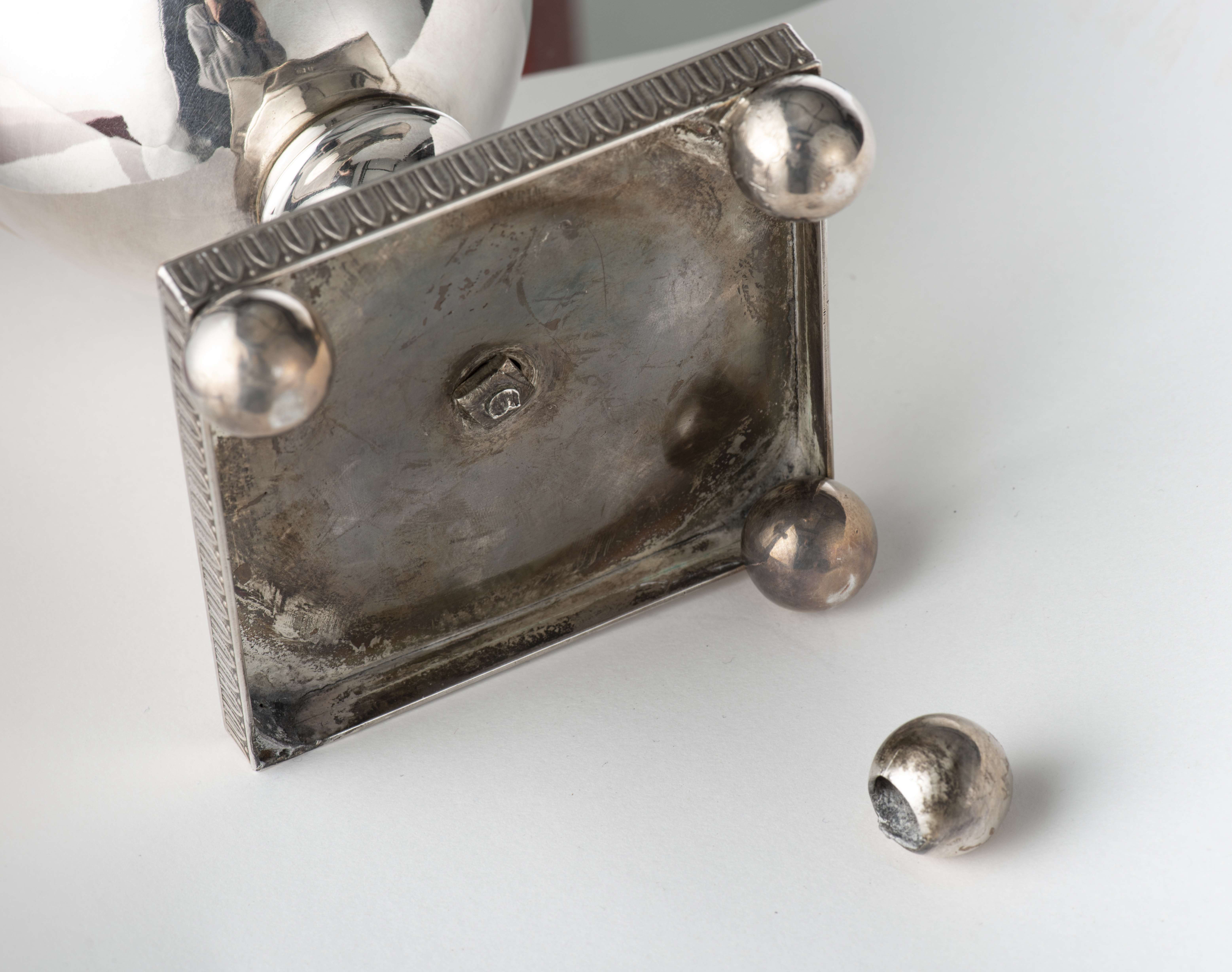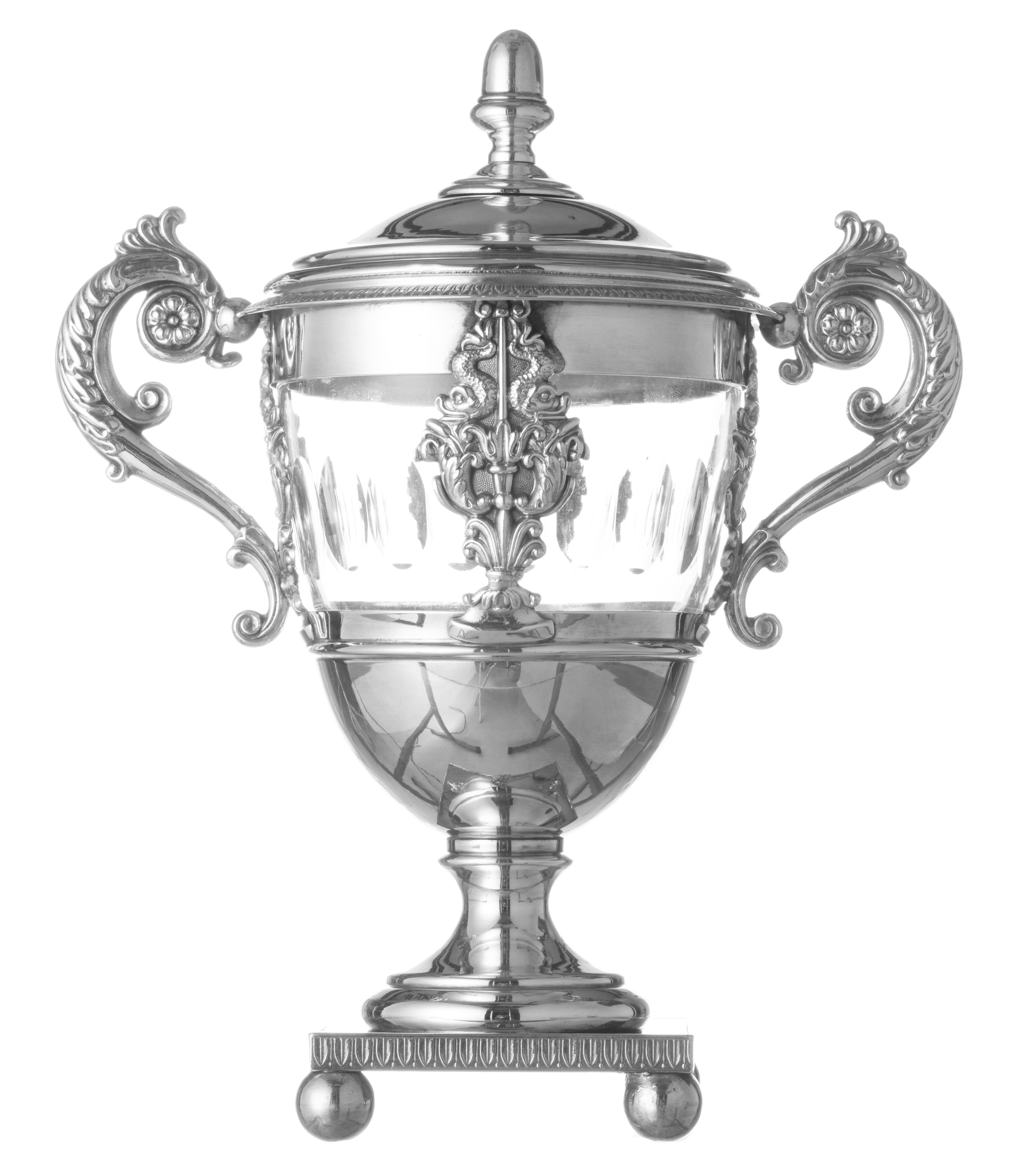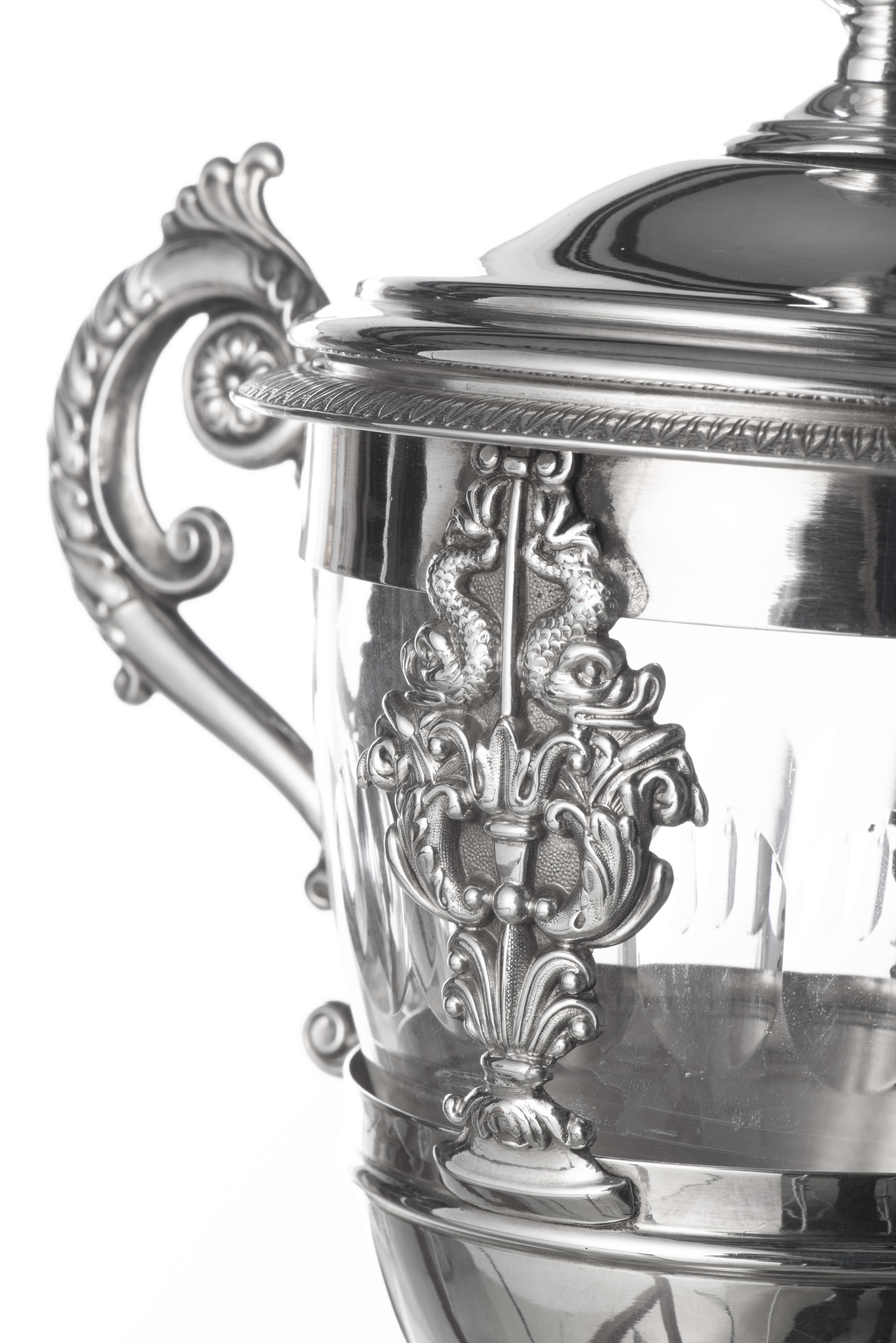 Confiturier en cuivre argenté de style Empire, coupe en cristal taillé et son couvercle.