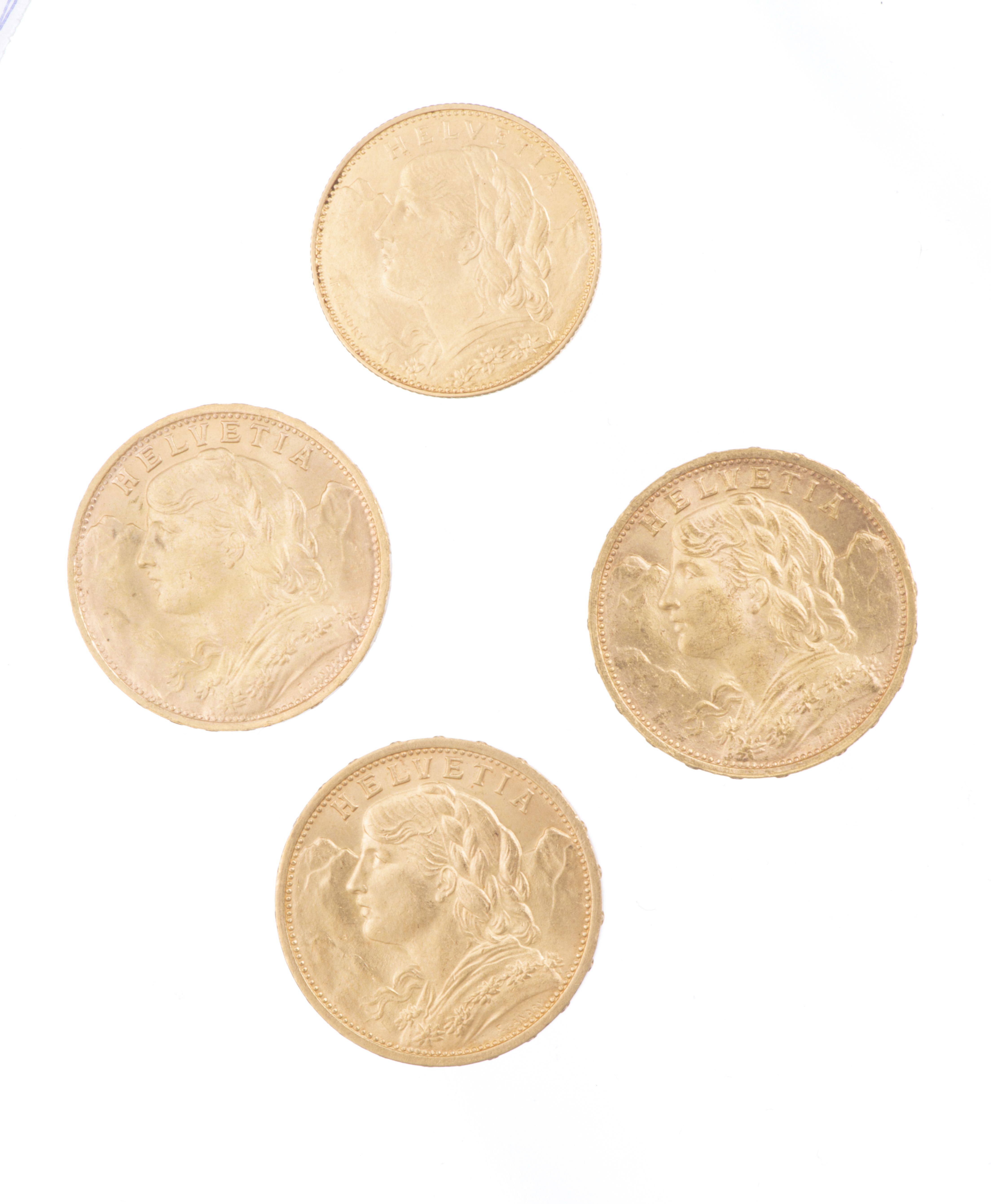 Trois Vreneli de 20.- or 1912, 1927 et 1947 et un de 10.- or 1914