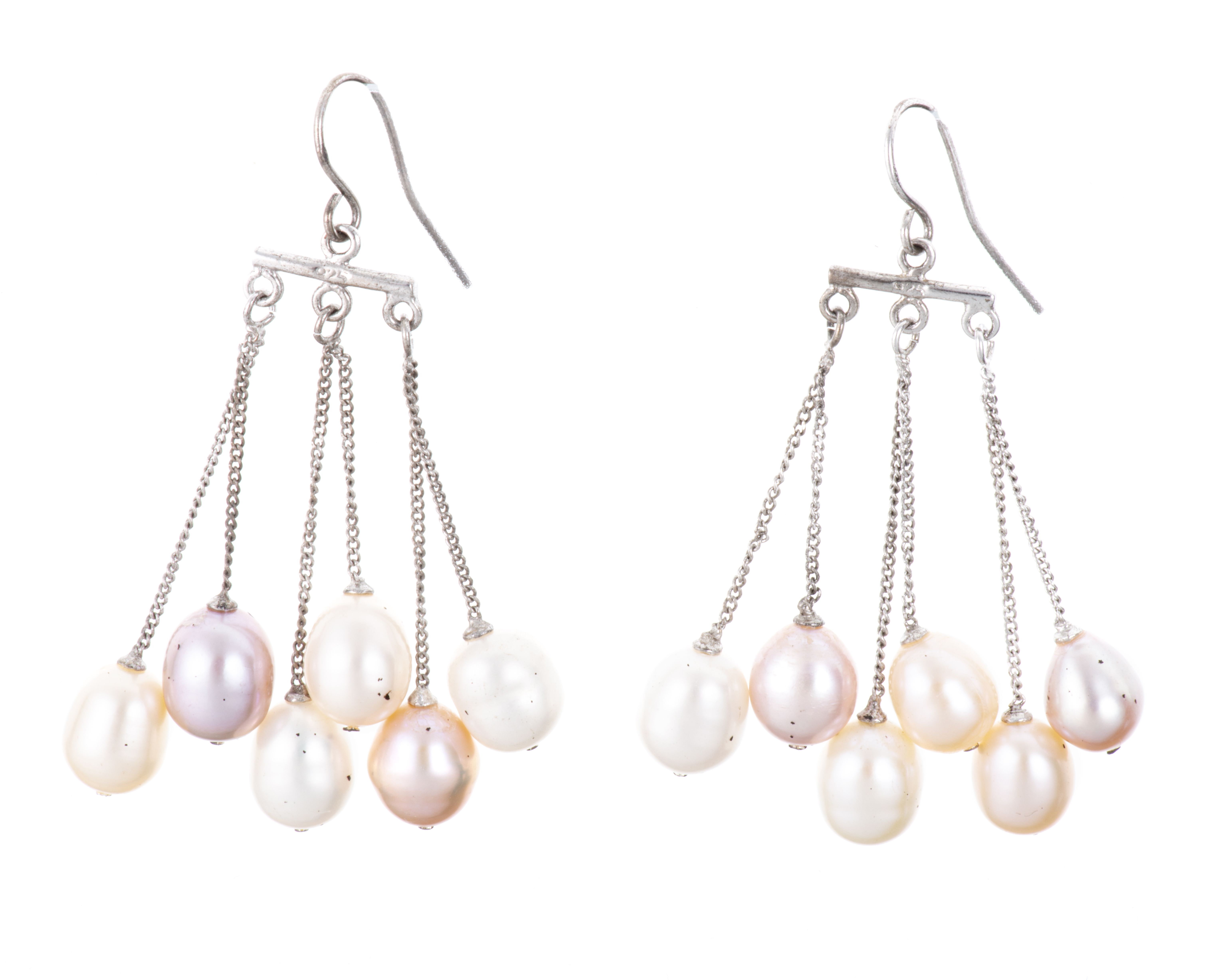 Paire de pendants d'oreilles à 6 perles baroques montées sur argent