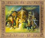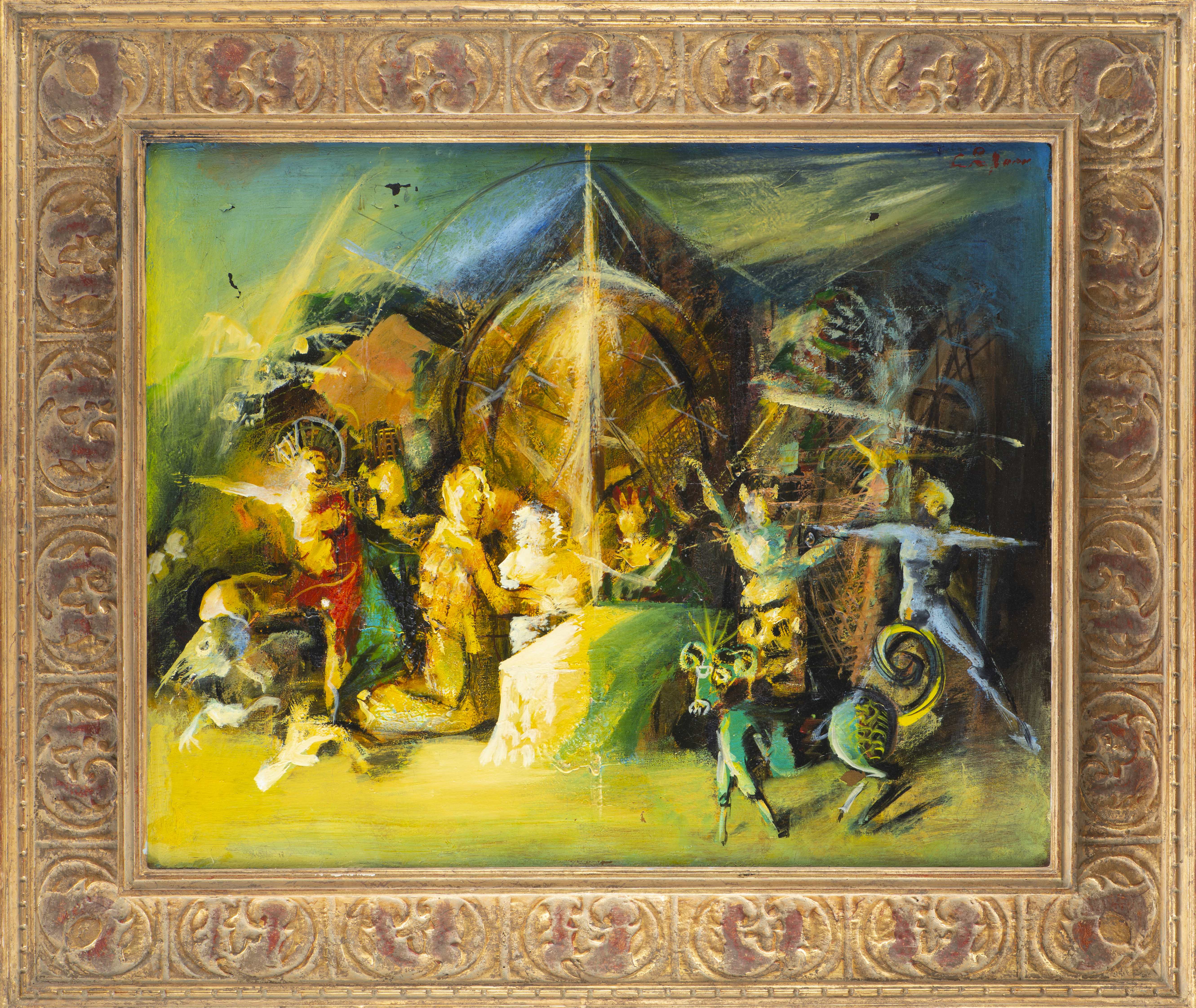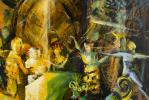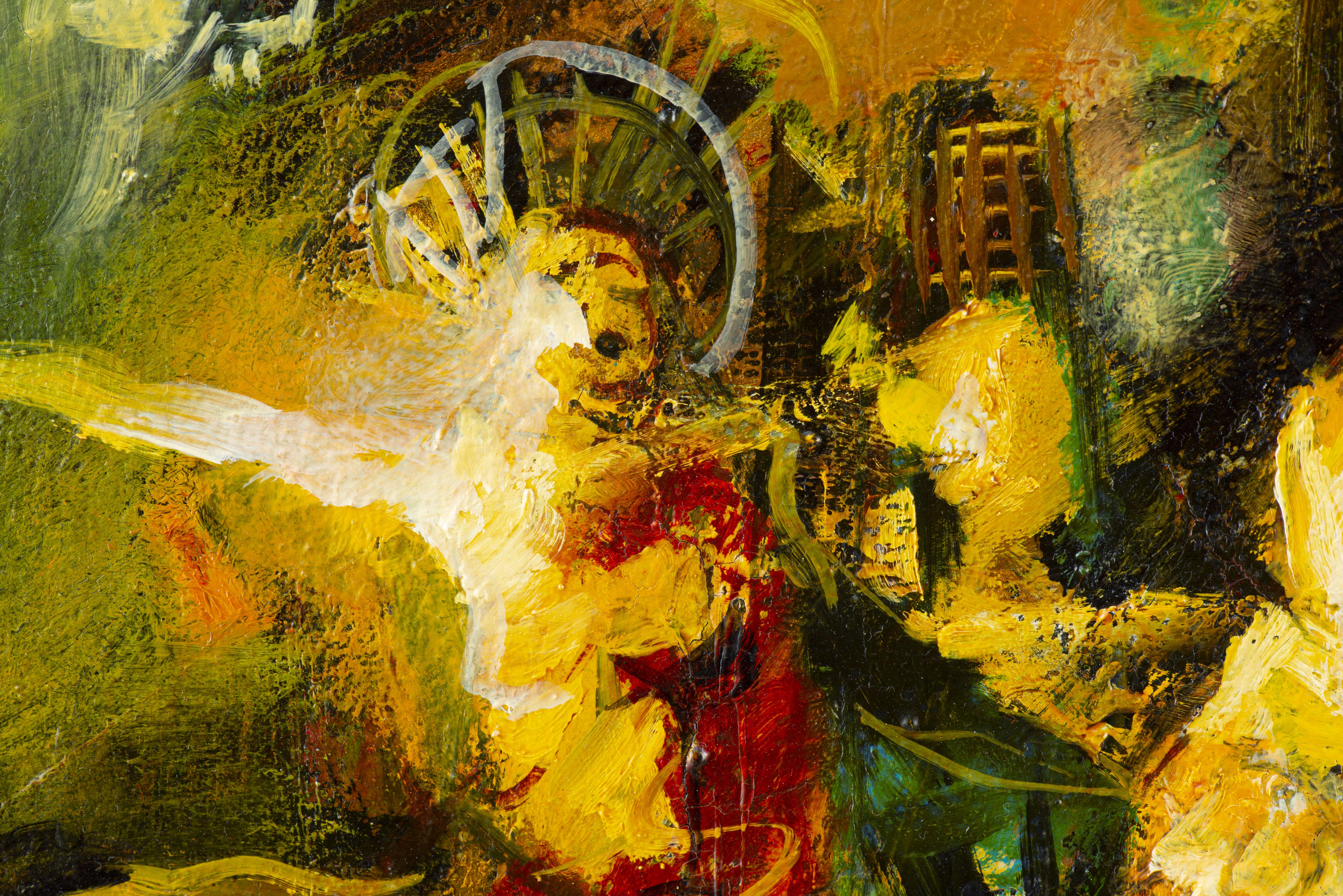 Mircea CIOBANU (1950-1991) "La visite", acrylique sur toile, signé en haut à droite en rouge.