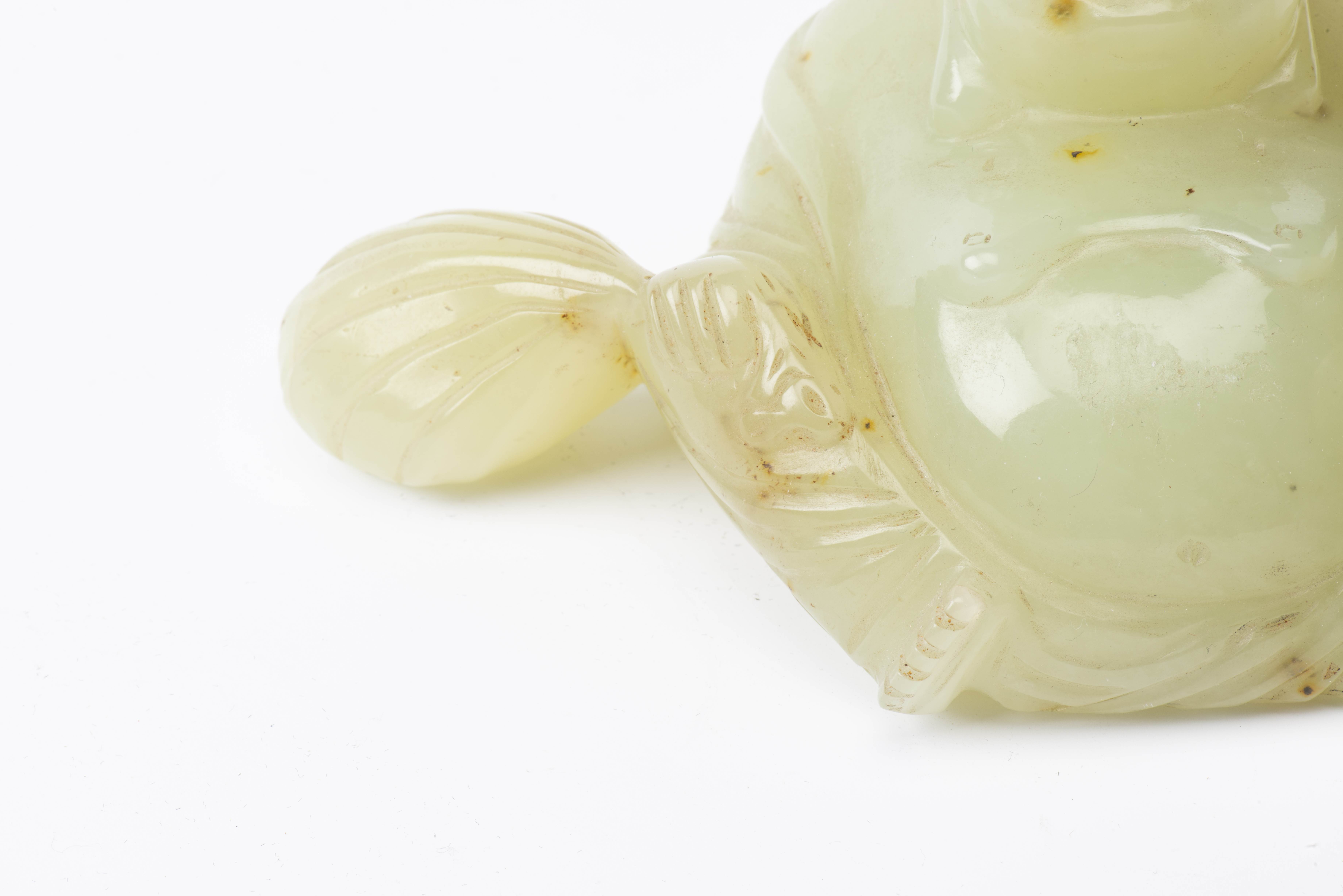 CHINE, Boudai assis en new jade vert céladon