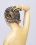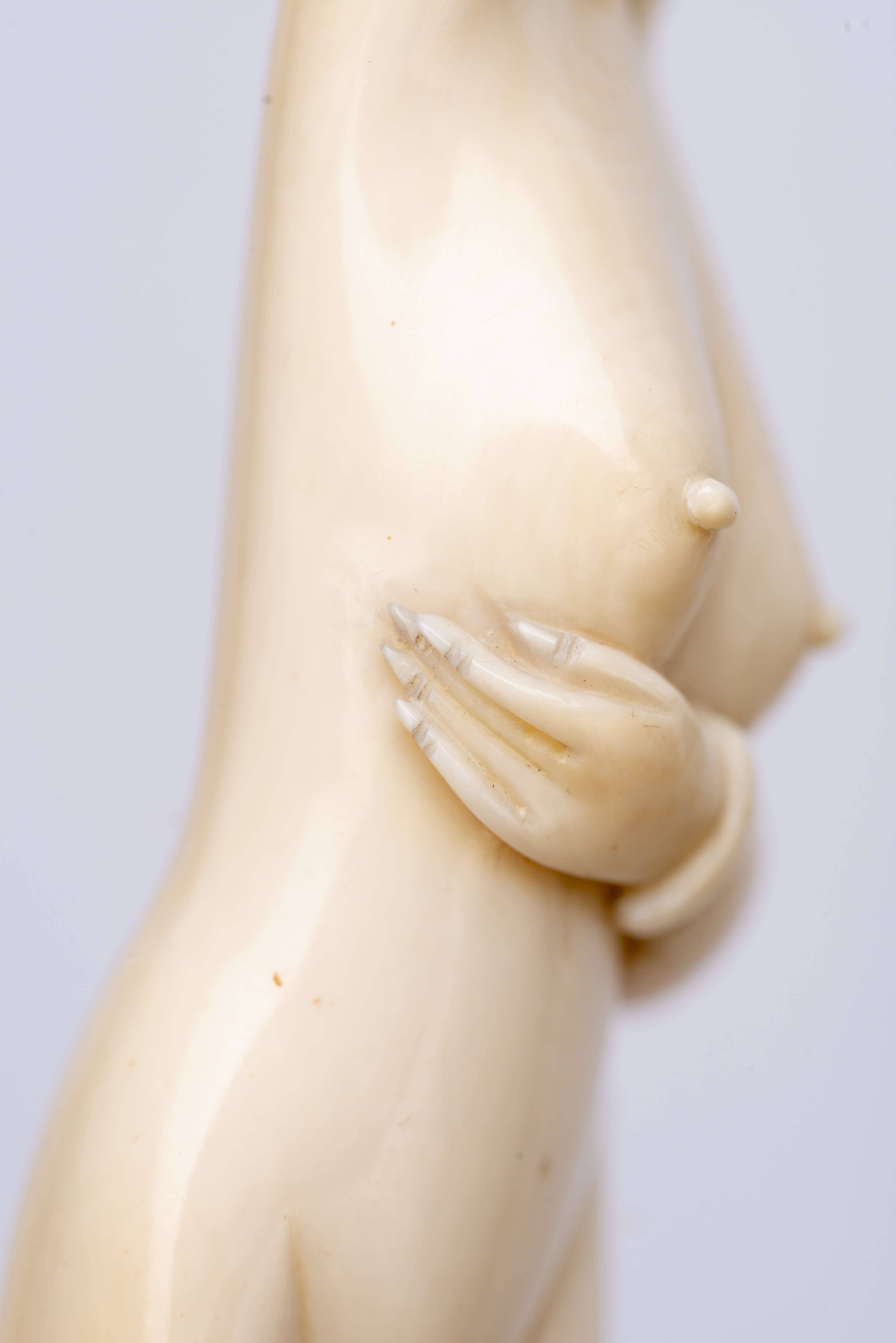petit défaut de l'ivoire sous la cuisse gauche Il ne sera délivré aucun CITES d'exportation de la part de Dognyauction pour les objets en ivoire ni ne sera effectué aucun envoi à l'étranger pour ce genre de pièce. Aucun remboursement ne sera accepté pour un éventuel refus d'exportation.