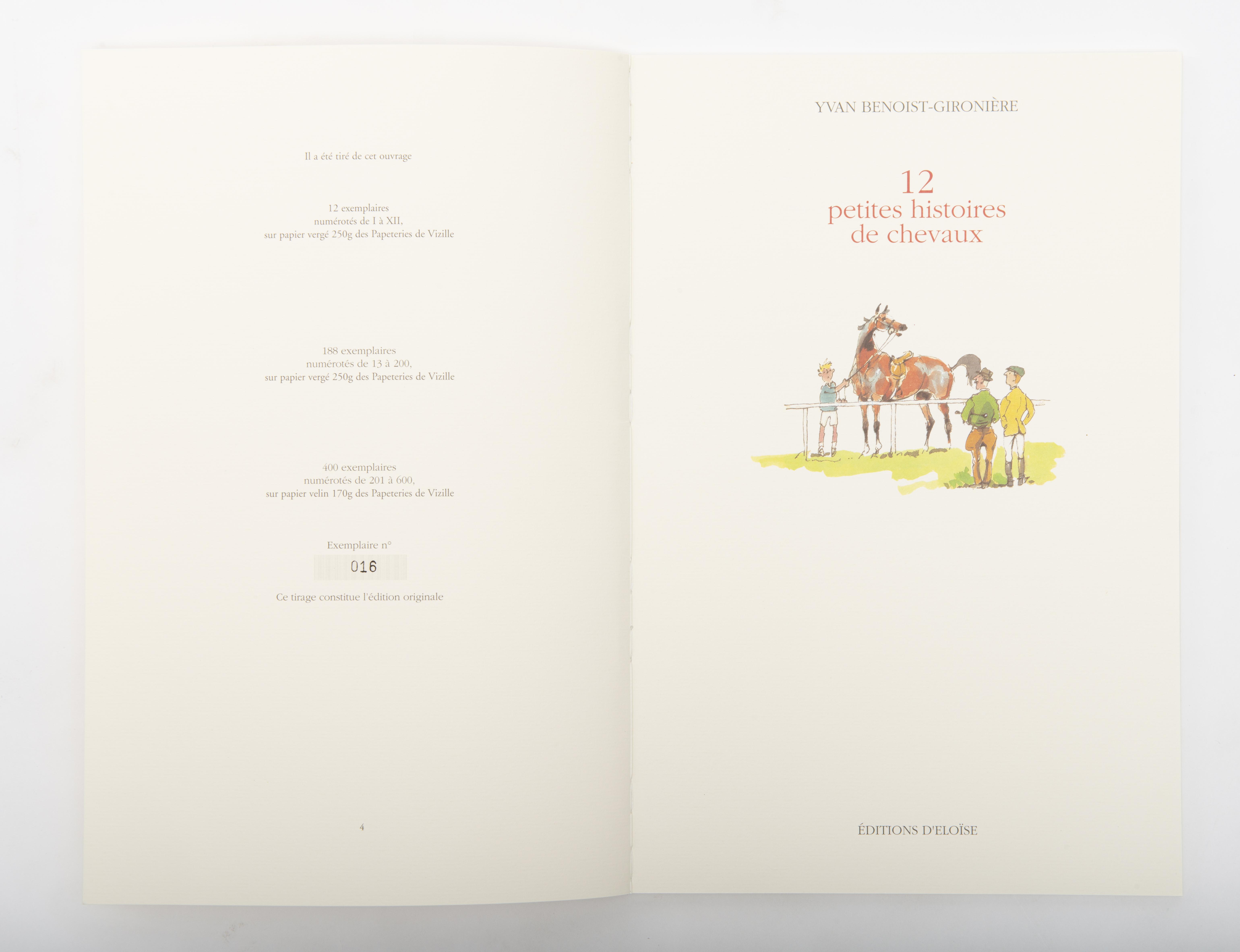 Yvan BENOIST-GIRONIERE, "12 petites Histoires de Chevaux", Editions d'Eloïse, 2000, couv. illustrée en couleurs rempliée, sous étui cartonné, préface de Corneilla del Vercol du 17 janvier 2000.