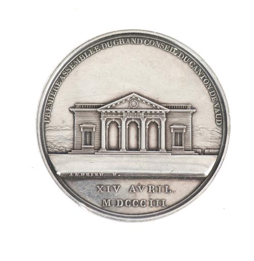Jean-Bertrand ANDRIEU (1761 - 1822), Médaille "Première assemblée du grand conseil du canton de Vaud, 14 avril 1803" en argent