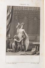 Torquato TASSO dit LE TASSE, "Jérusalem Délivrée", Bossange, Masson, Paris, 1803, édition en premier tirage, avec la traduction de Le Brun, accompagnée de la vie du Tasse par Suard. L'illustration comprend le portrait du Tasse gravé par Delvaux d'après Chasselat, et 20 figures de Le Barbier gravées par Bovinet, Dambrun, Delignon, Langlois, Trière, etc, protégées par des serpentes. Reliures de l'époque en plein veau marbré, plats encadrés d'une roulette dorée, dos lisse, tranches dorées.