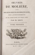 Œuvres de MOLIÈRE avec des remarques grammaticales, des avertissements et des observations sur chaque pièce par M. Bret, 6 volumes, Paris, 1804