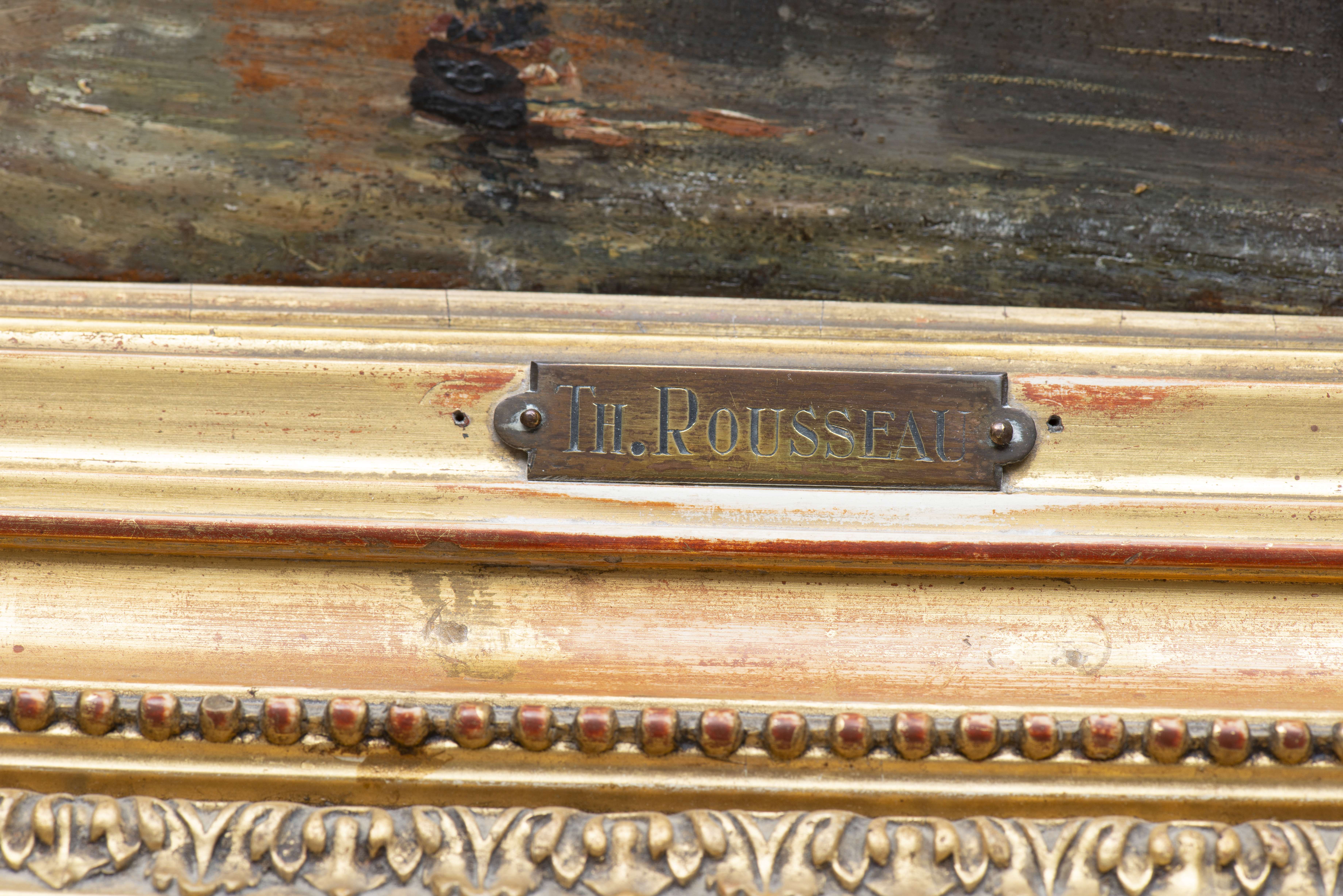Théodore Rousseau (1812-1867), "Cours d'eau au lever du jour", Huile sur bois, non signé.