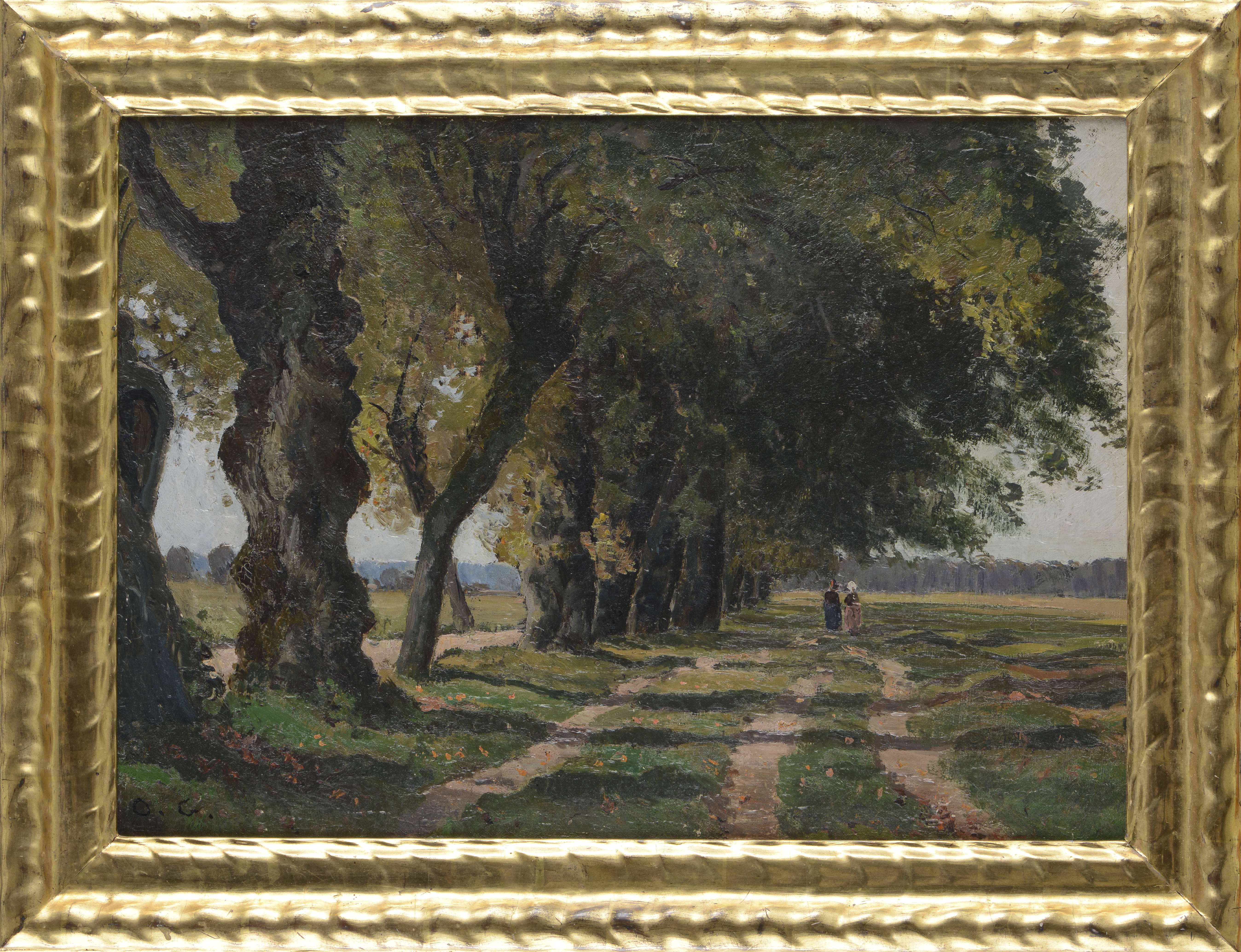 Otto GAMPERT (1842-1924), "Chemin sous une allée d'arbres", Huile