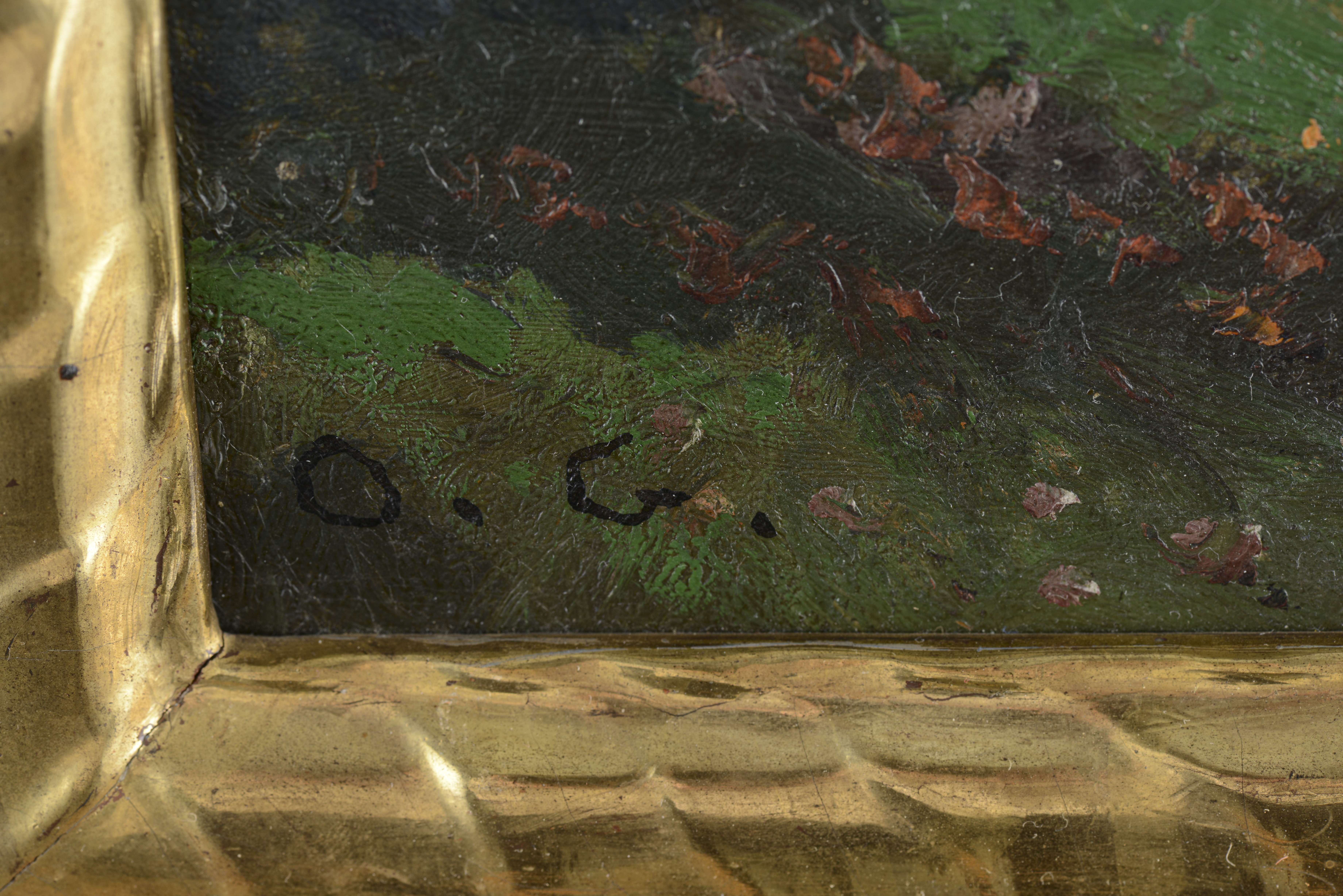 Otto GAMPERT (1842-1924), "Chemin sous une allée d'arbres", Huile sur toile marouflée sur isorel et mon. en bas à gauche O. G.