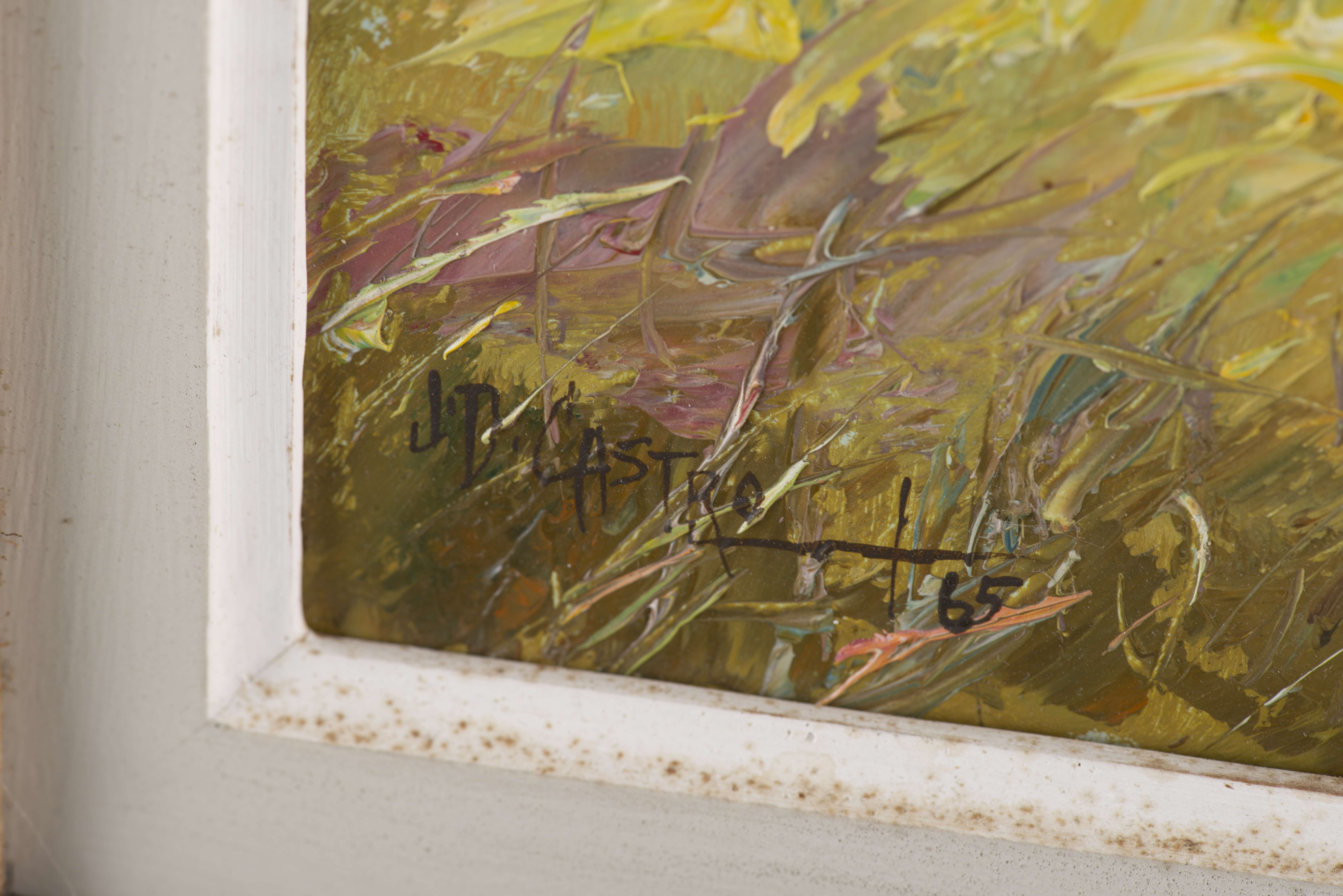 - "Barrio Scene", huile sur panneau, signée en bas à droite : " J.D. CASTRO 65", 25.5 x 33.5 cm