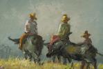 - "La chevauchée", huile sur panneau, signée en bas à gauche : " J.D. CASTRO 65", 22 x 30 cm