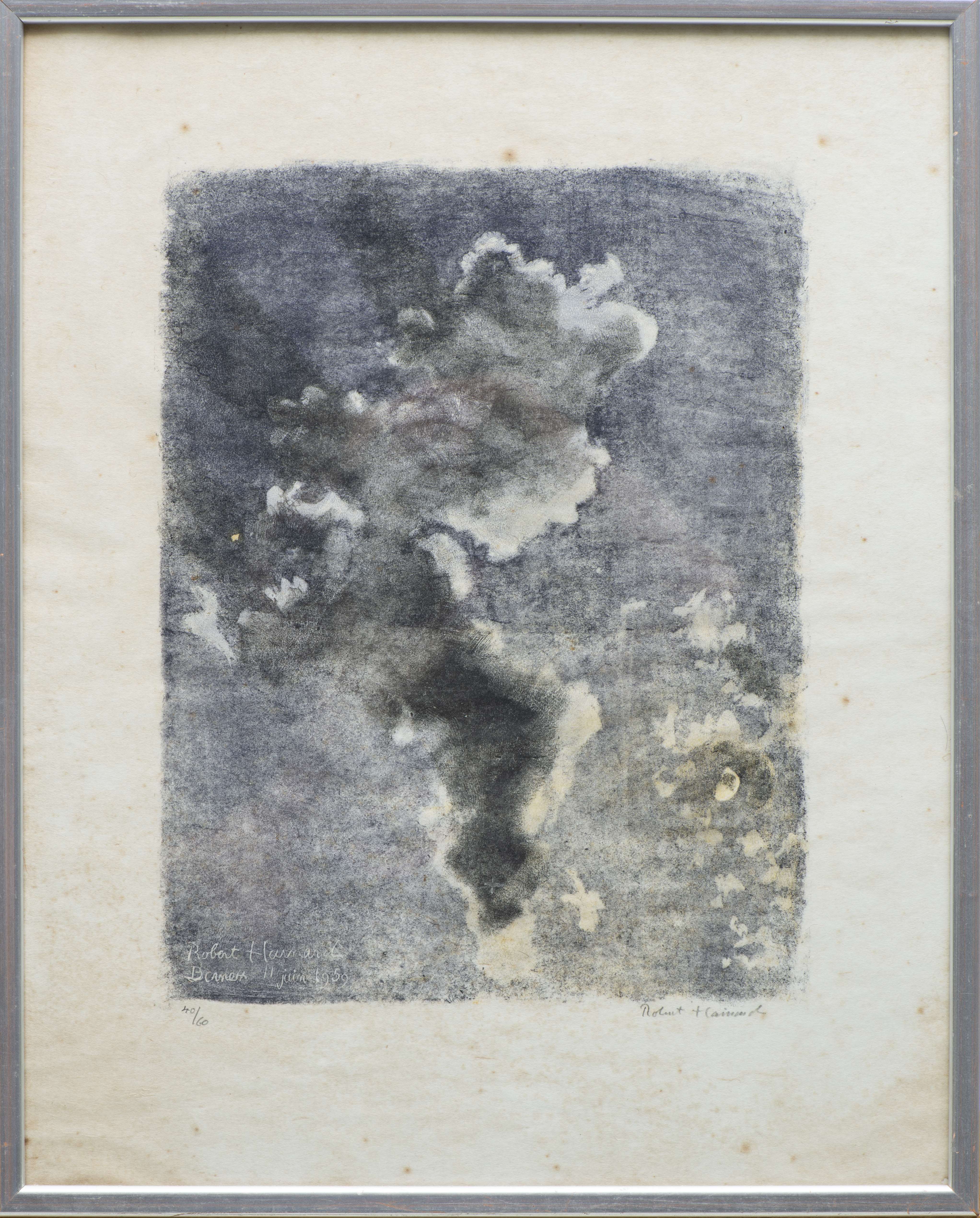 Robert HAINARD (1906-1999), "Nuages au clair de lune", Xylographie sur papier, signé dans la planche, localisé et daté "Bernex 11.6.1959" en bas gauche, numéroté 40/60 en bas à gauche et signé à droite au crayon.
