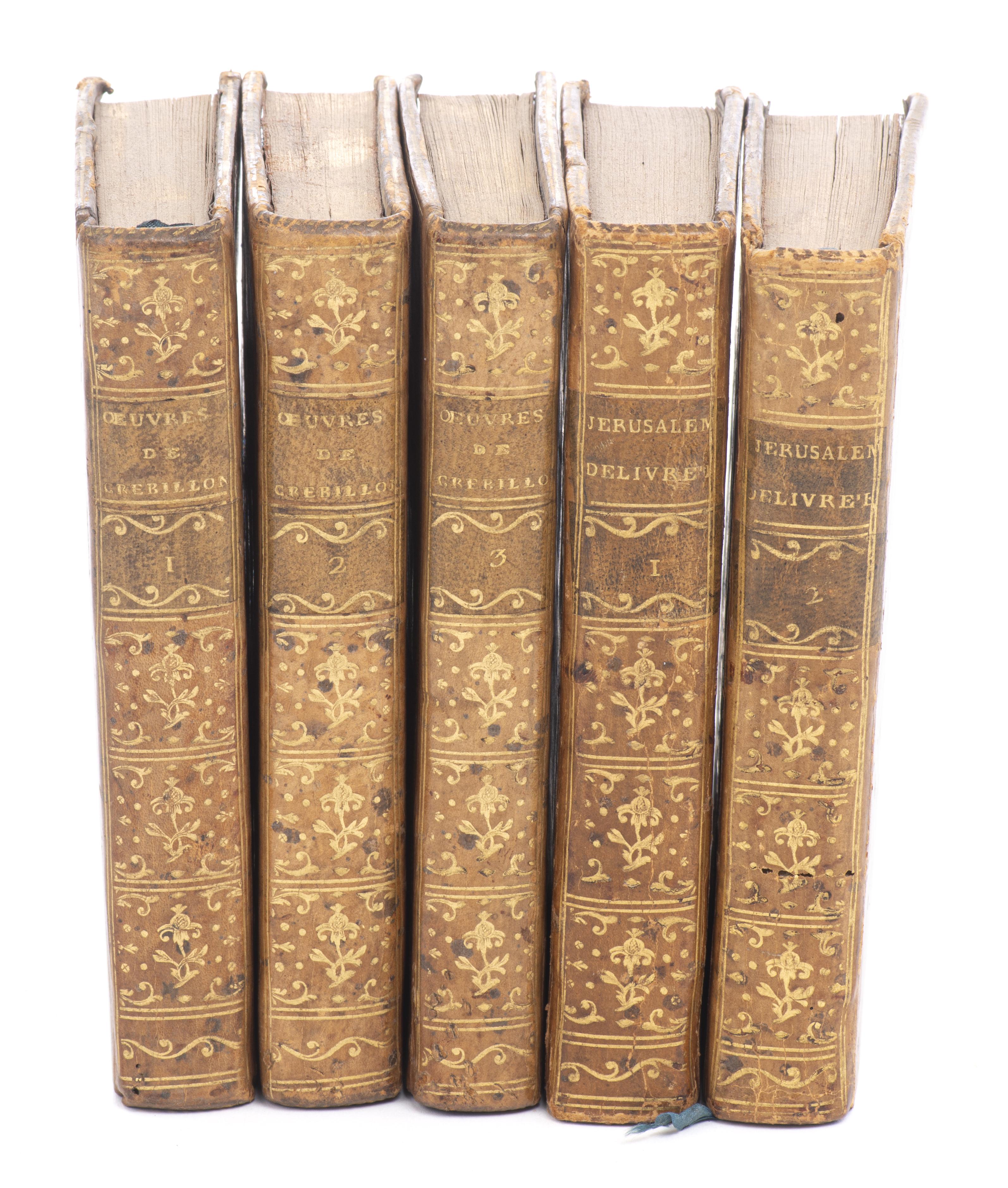 - Cinq volumes des éditions Cazin, reliure plein veau d'époque, doré sur les trois tranches, comprenant :