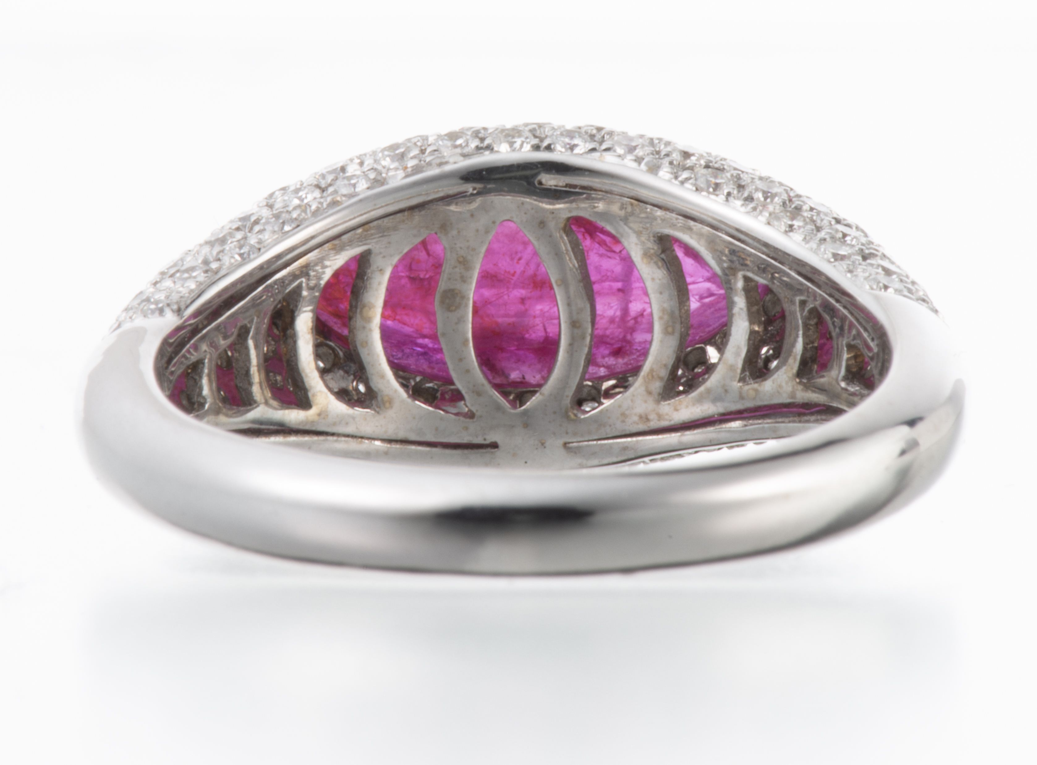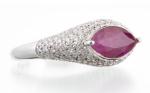 Diana CARMICHAE, Bague en or gris .750 sertie d'un rubis de taille marquise pesant 1.55 ct et de diamants de taille brillant pesant au total 0.88 ct.