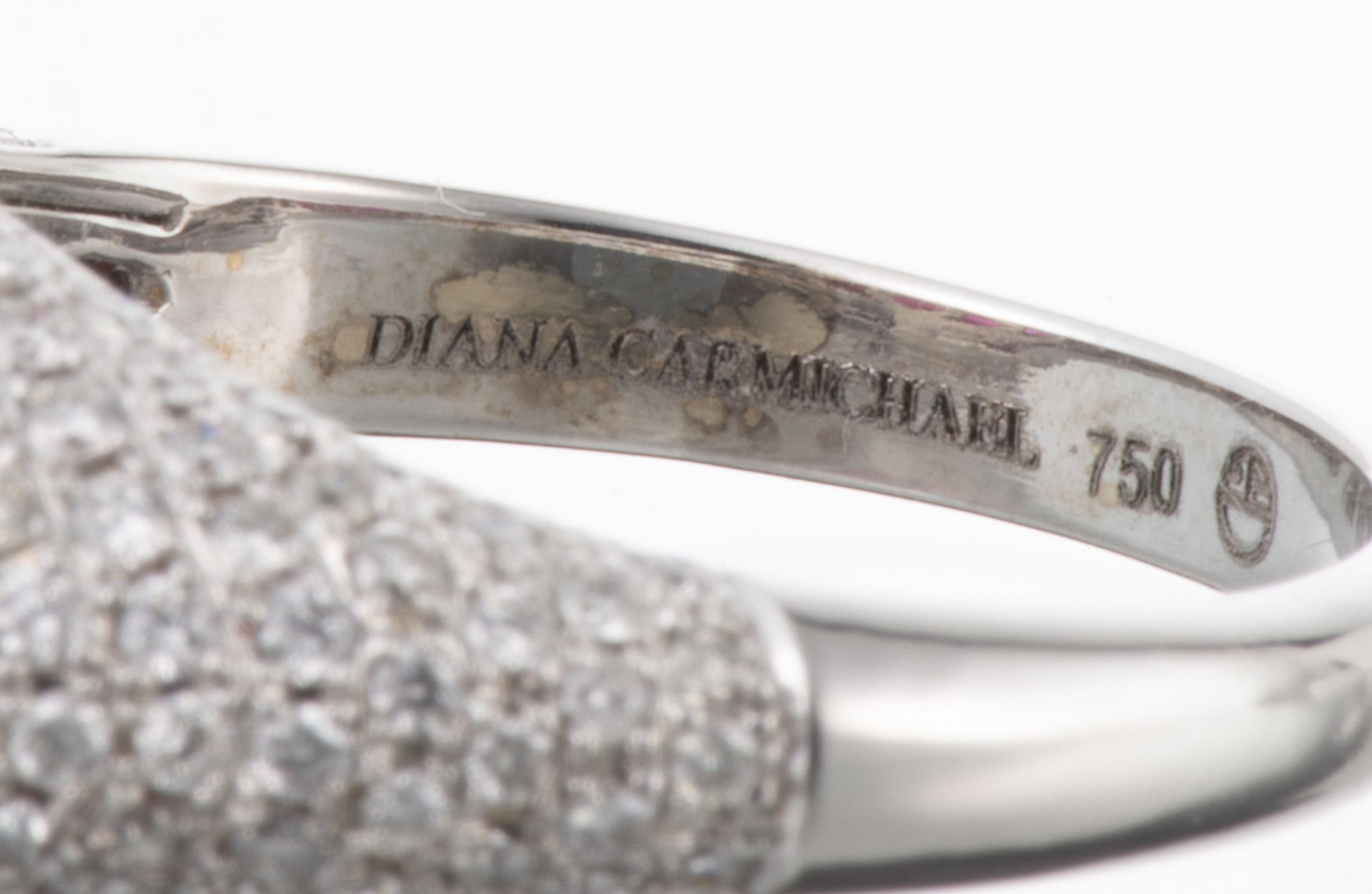 Diana CARMICHAEL, Bague en or gris aux diamants et rubis