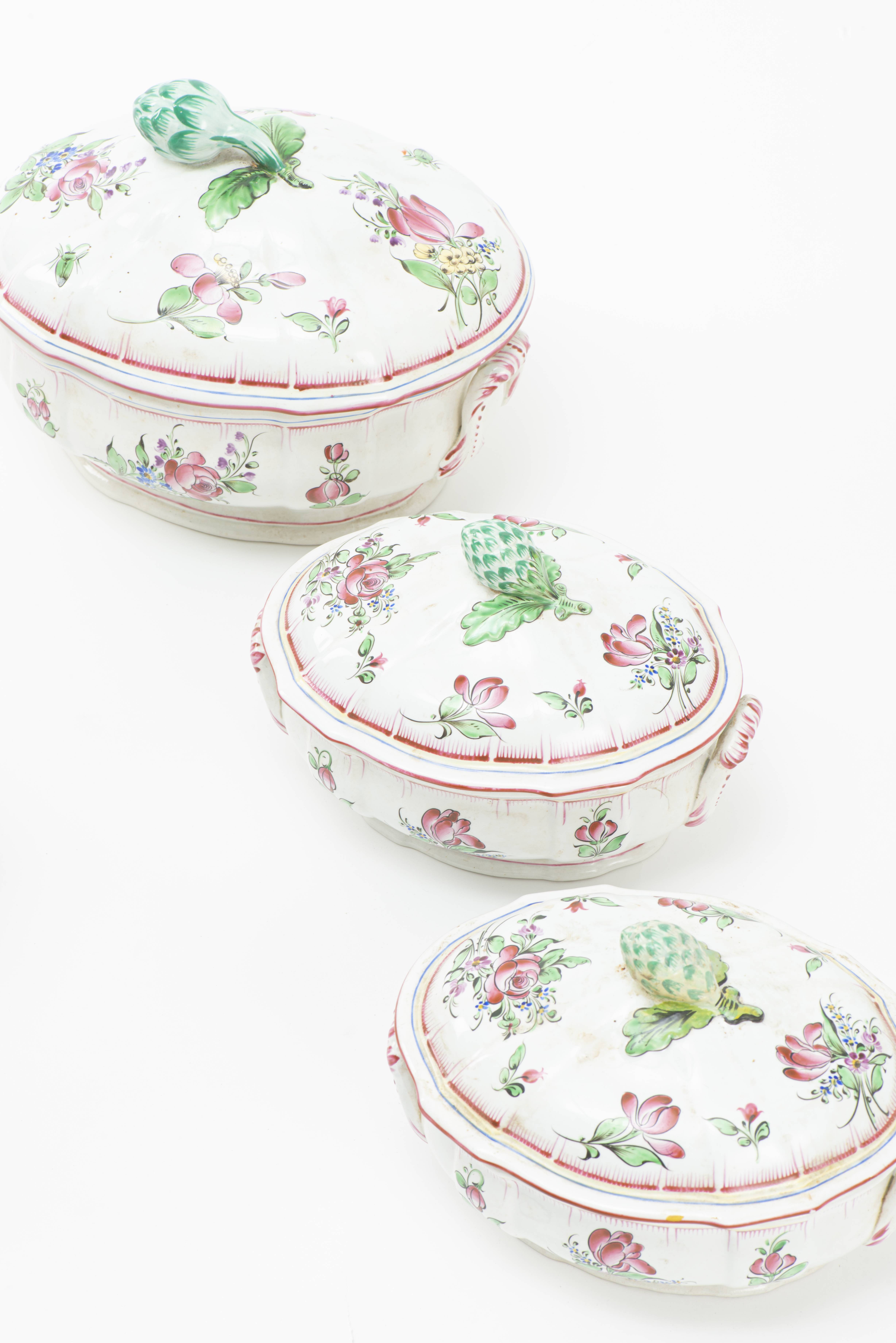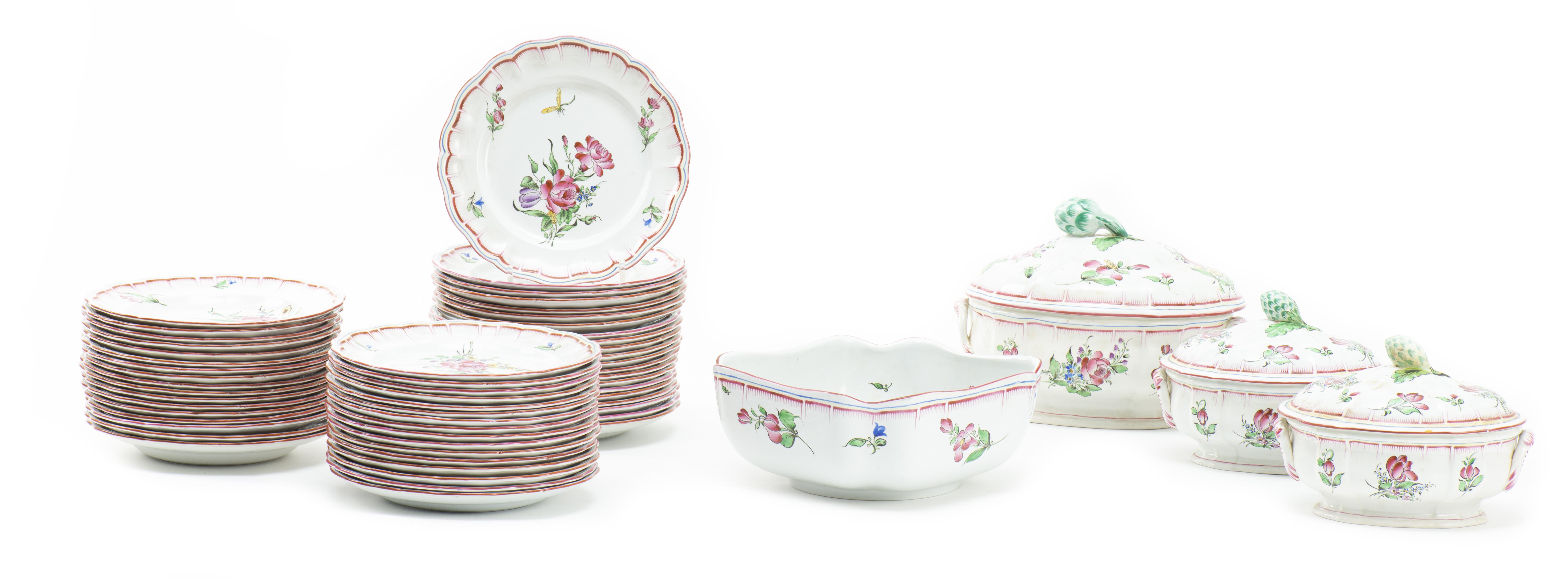 LUNEVILLE Faïencerie de Saint Clément, Service à décor floral et artichauts