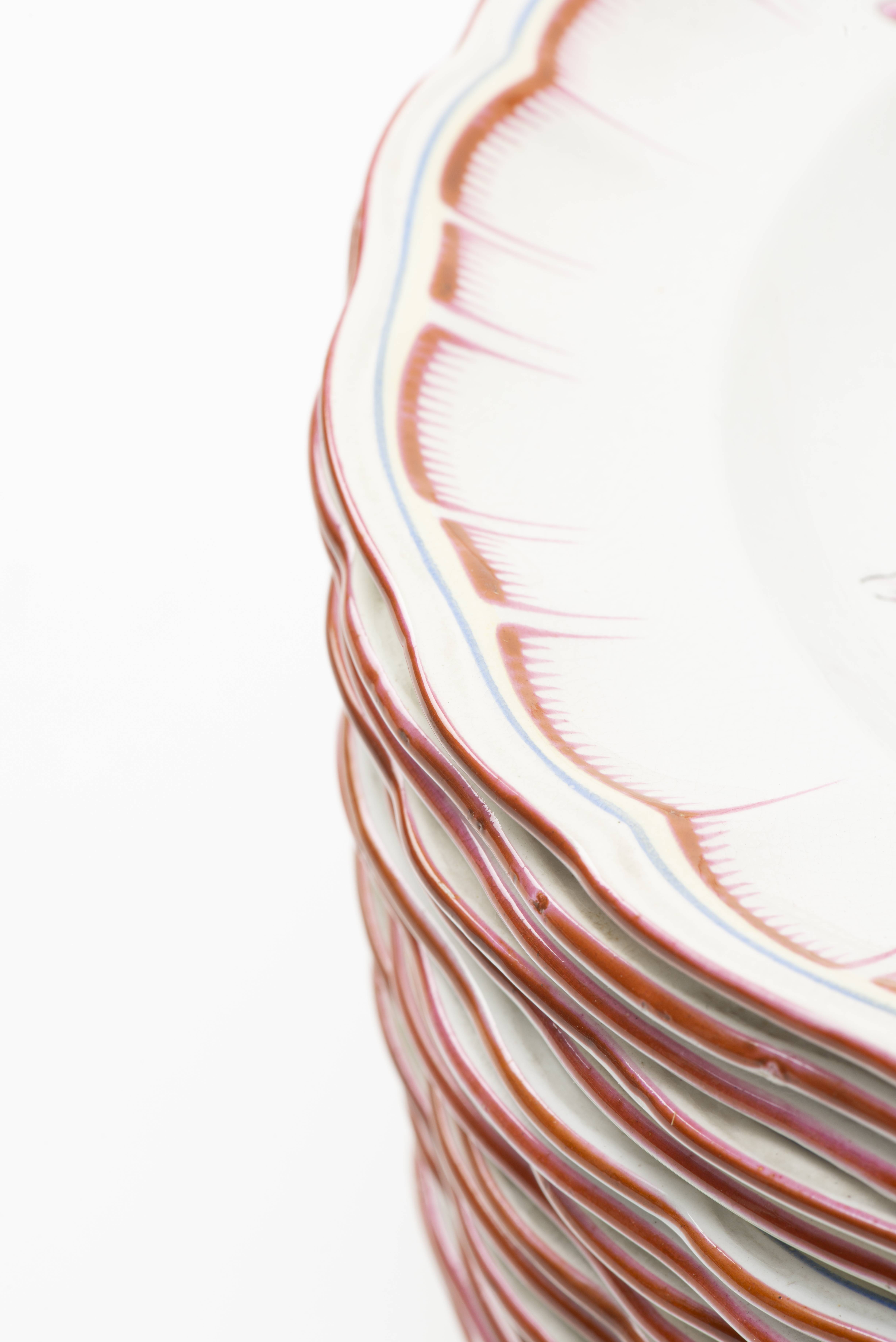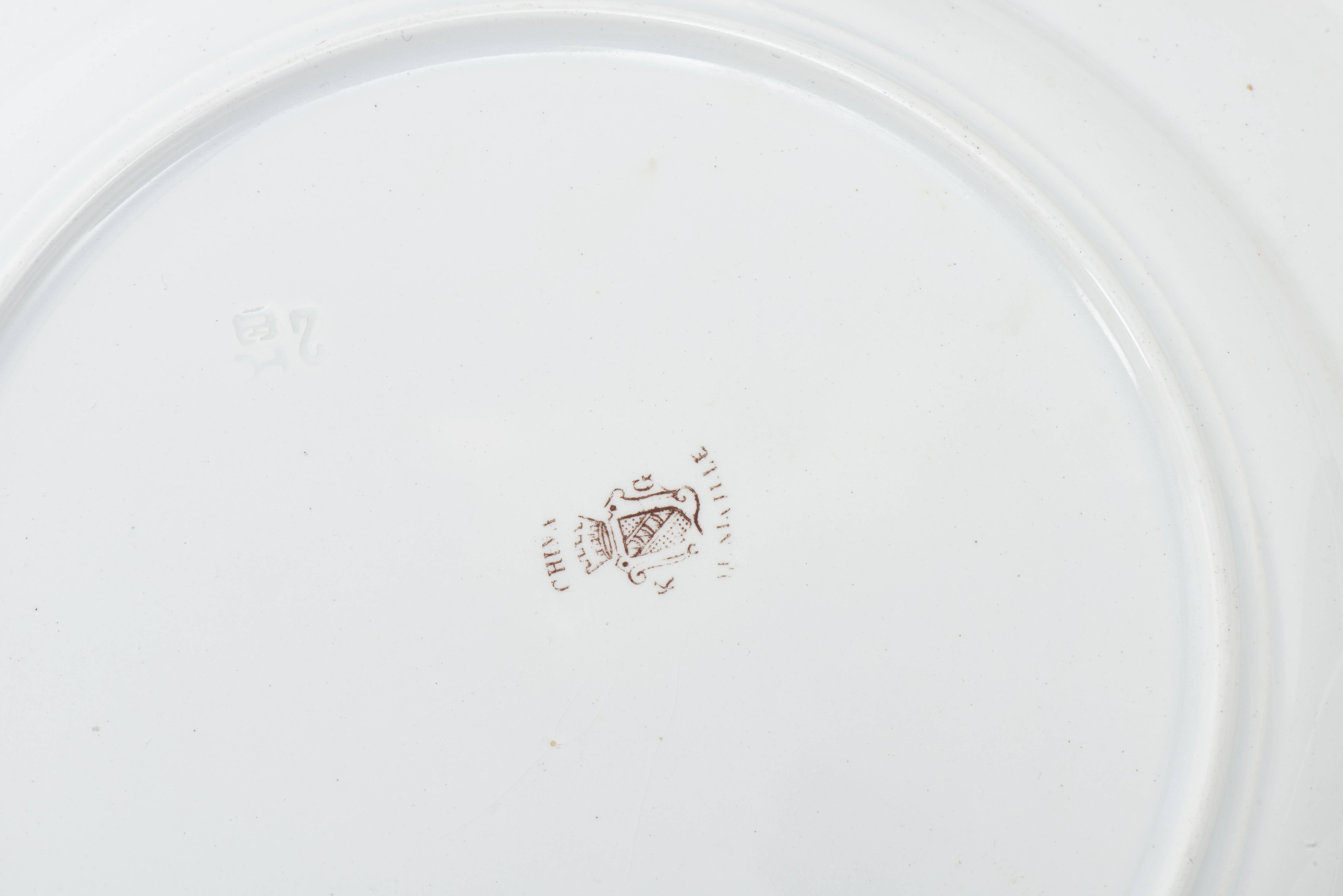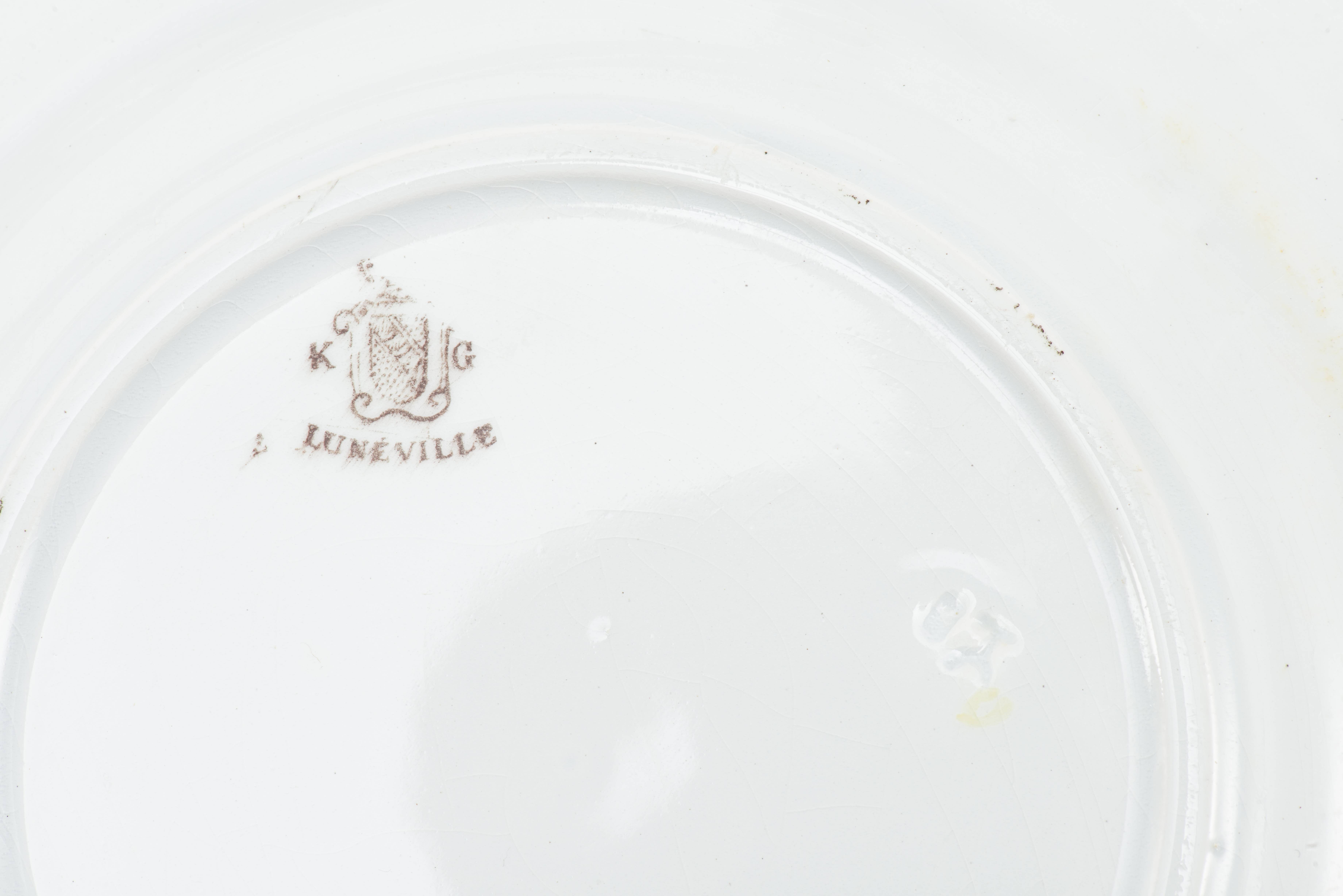LUNEVILLE, Service en faïence de Saint Clément à décor de fleurs et artichauts, cachet sous la base composé de :