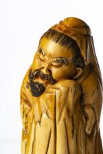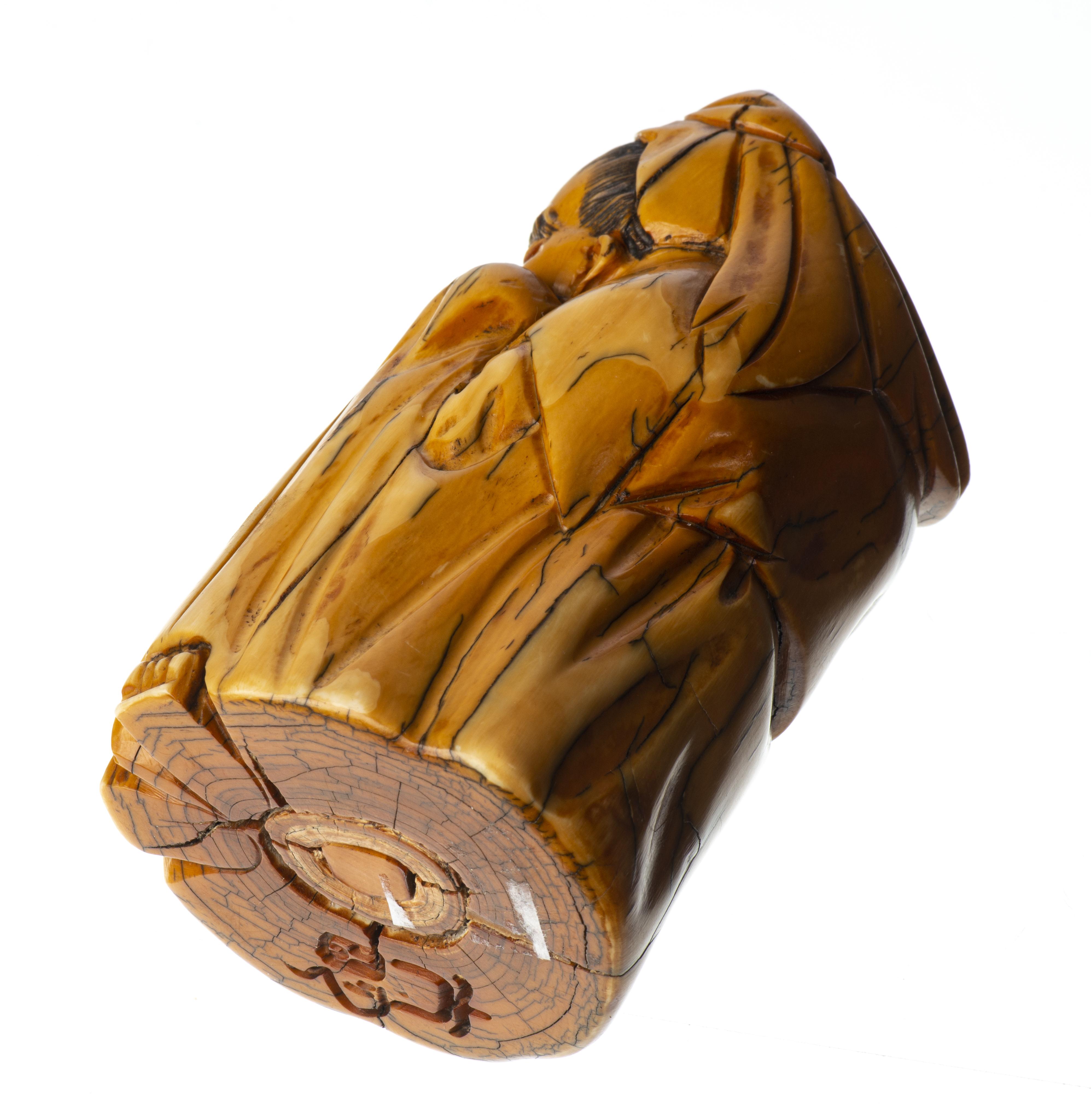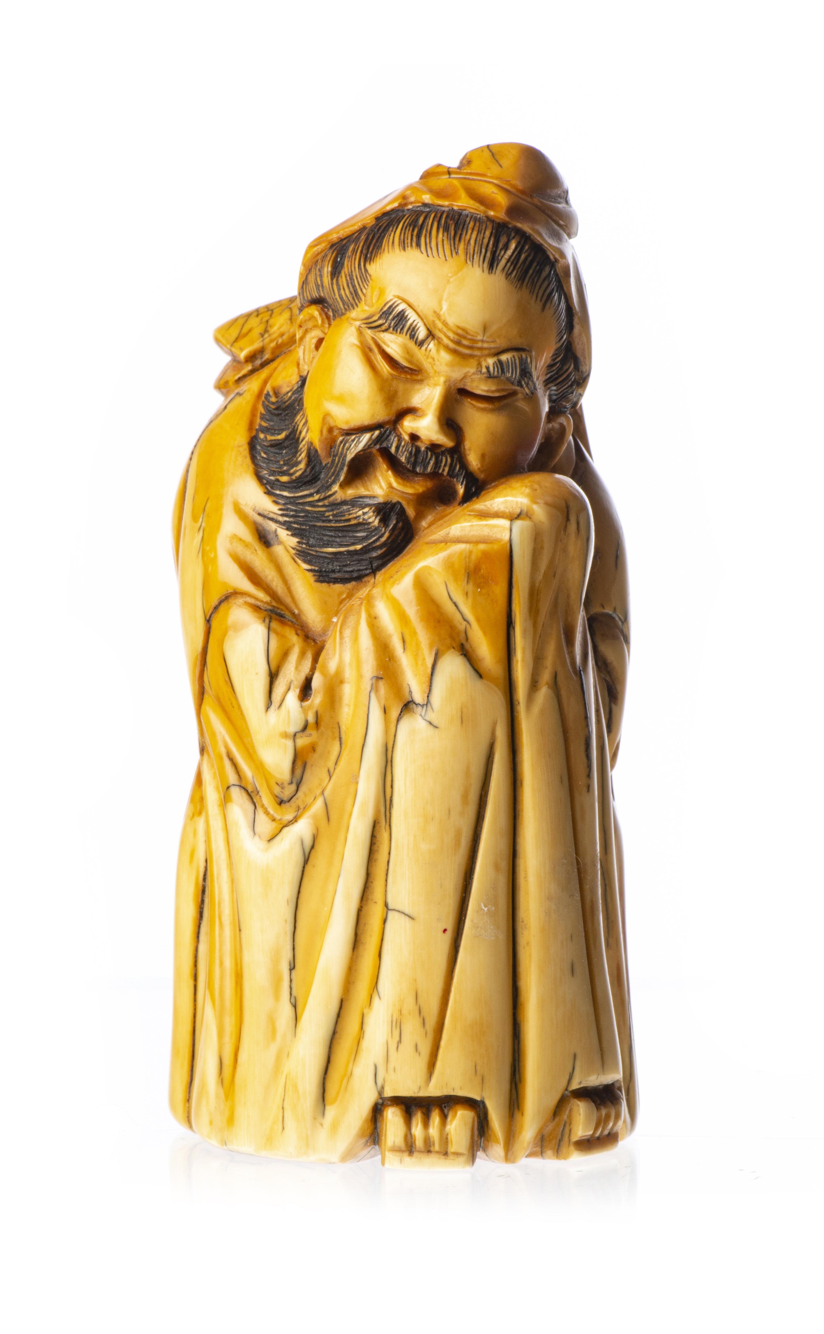 CHINE, sculpture en ivoire de mammouth représentant un vieux sage assis et endormi.