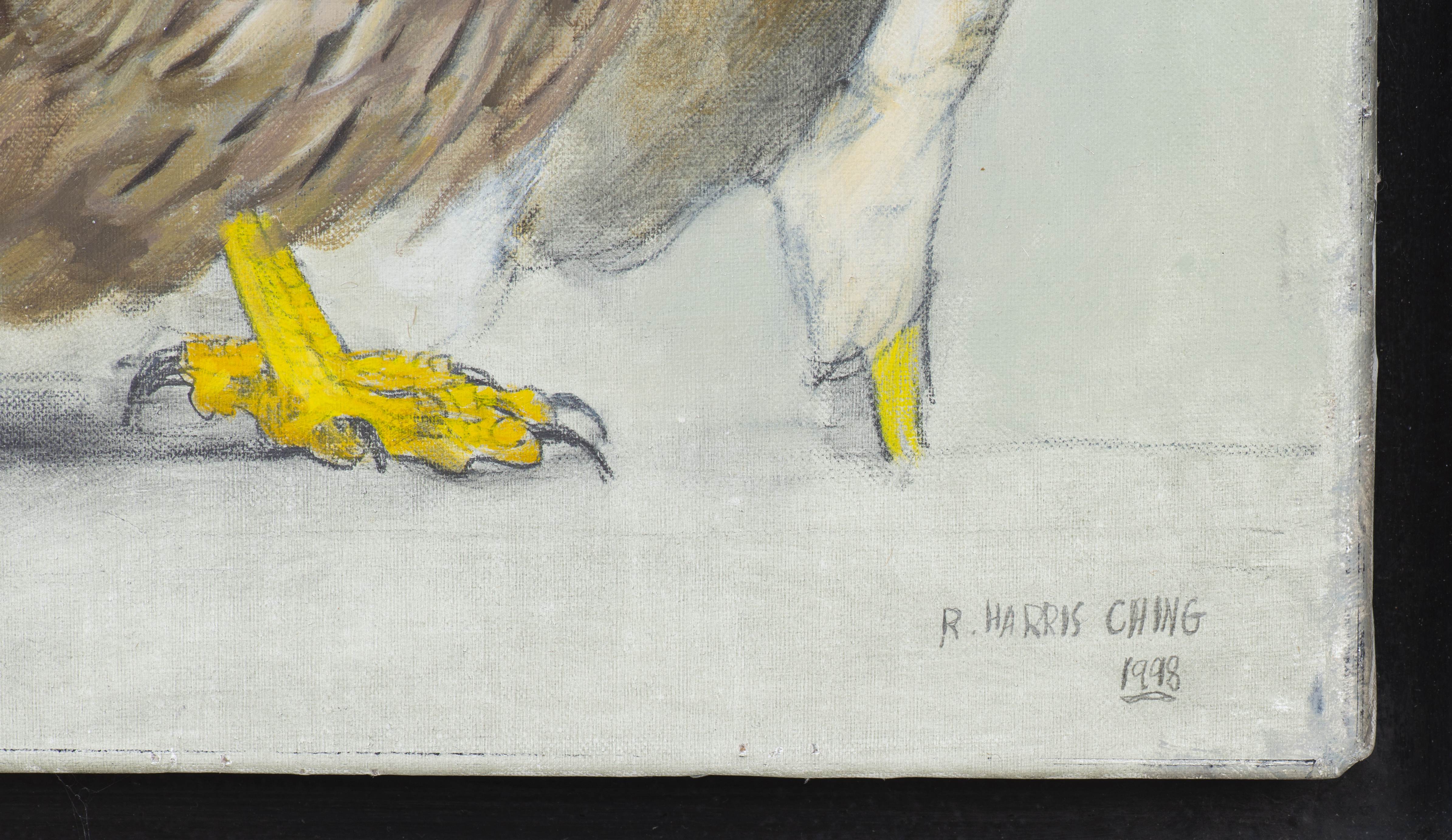 71.5 x 91 cmNotesRaymond Ching, né en 1939, est un artiste renommé qui s'est distingué au sein du mouvement de l'art animalier par sa virtuosité artistique et sa profonde connexion avec la faune. Originaire de Nouvelle-Zélande, Ching a consacré sa vie à capturer la beauté et la complexité des animaux sauvages à travers des œuvres d'art remarquables. Sa carrière artistique s'étend sur plusieurs décennies, et il est reconnu pour son habileté à capturer la réalité et l'essence émotionnelle des animaux dans ses peintures et ses dessins. Ching maîtrise diverses techniques artistiques, allant du réalisme minutieux à une interprétation plus expressive, ce qui lui permet de créer des œuvres qui révèlent la personnalité unique de chaque créature. L'œuvre de Raymond Ching se distingue par sa précision anatomique et son attention aux détails. Il parvient à donner vie à ses sujets, qu'il s'agisse d'oiseaux majestueux, de mammifères élégants ou d'autres créatures de la faune. Sa capacité à saisir des moments d'intimité et de mouvement ajoute une dimension narrative captivante à ses œuvres. En plus de sa maîtrise technique, Ching apporte également une perspective émotionnelle à ses créations. Ses œuvres ne se contentent pas de représenter les animaux dans leur habitat naturel, elles évoquent également une profonde compréhension de leurs comportements et de leurs interactions au sein de l'écosystème. Grâce à l'ornithologiste Sir William Collins, il illustra en 1996 le "Readers Digest Book of British Birds" qui assuré sa renommée internationalle. Raymond Ching a remporté de nombreux prix et distinctions au cours de sa carrière, ce qui témoigne de l'impact qu'il a eu sur le monde de l'art animalier. Ses œuvres sont présentes dans des collections prestigieuses à travers le monde et continuent d'inspirer les artistes et les amateurs de la faune. En somme, Raymond Ching se démarque comme un virtuose de l'art animalier, ayant consacré sa carrière à créer des œuvres d'art exceptionnelles qui célèbrent la beauté et la diversité de la faune mondiale.