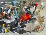 Raymond HARRIS-CHING (1939), "Field Guide II (Red Bird)", huile sur toile, signé en bas à droite et daté 98.