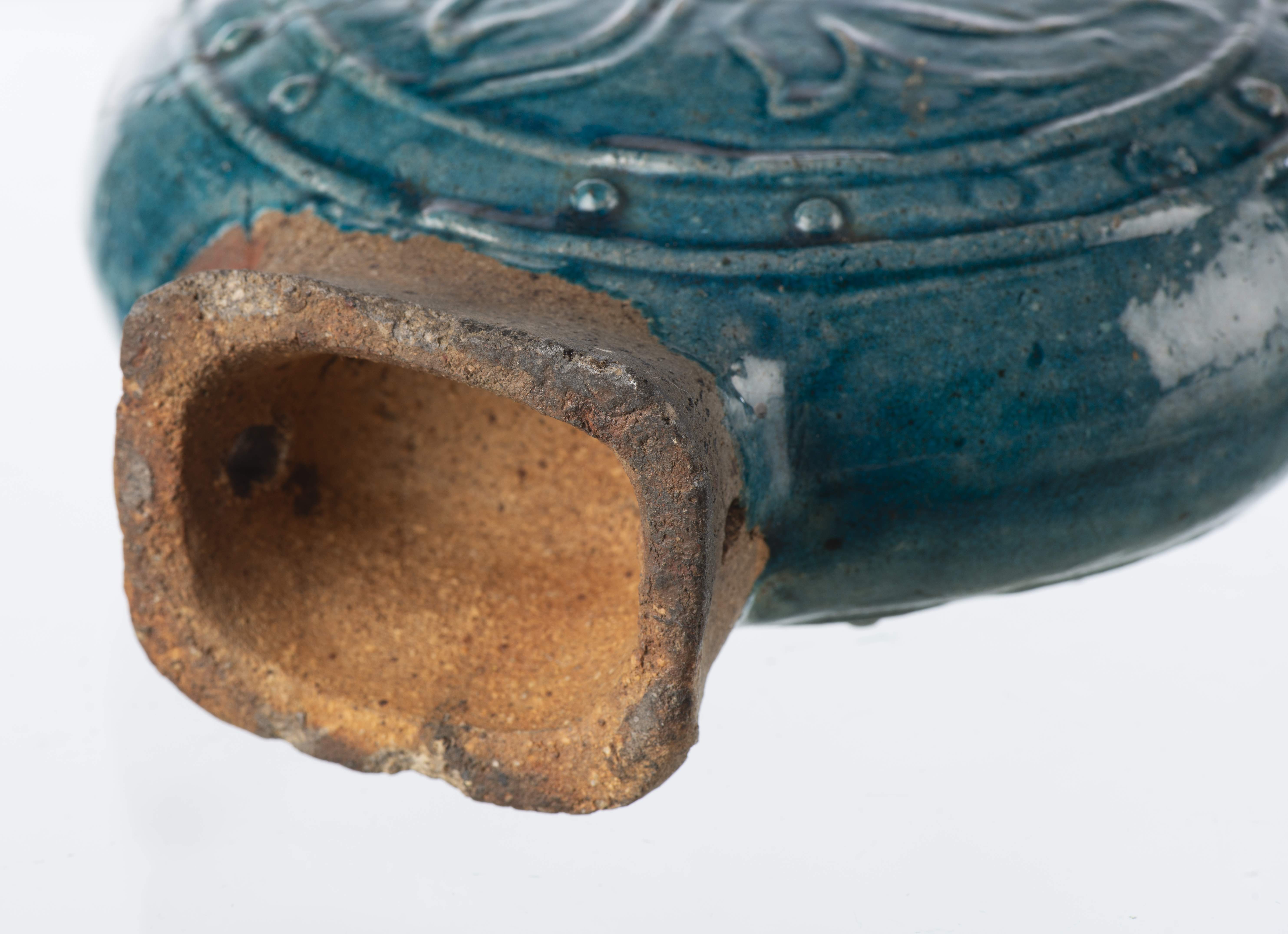 CHINE - Gourde circulaire applatie de style Ming en grès à glaçure bleu turquoise