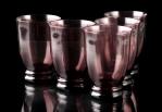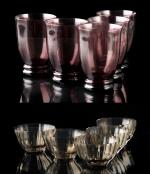 5 verres côniques rougeâtres sur pied à 2 anneaux et 5 coupes à fruits en cristal fumé de Daum Art-déco XXe
