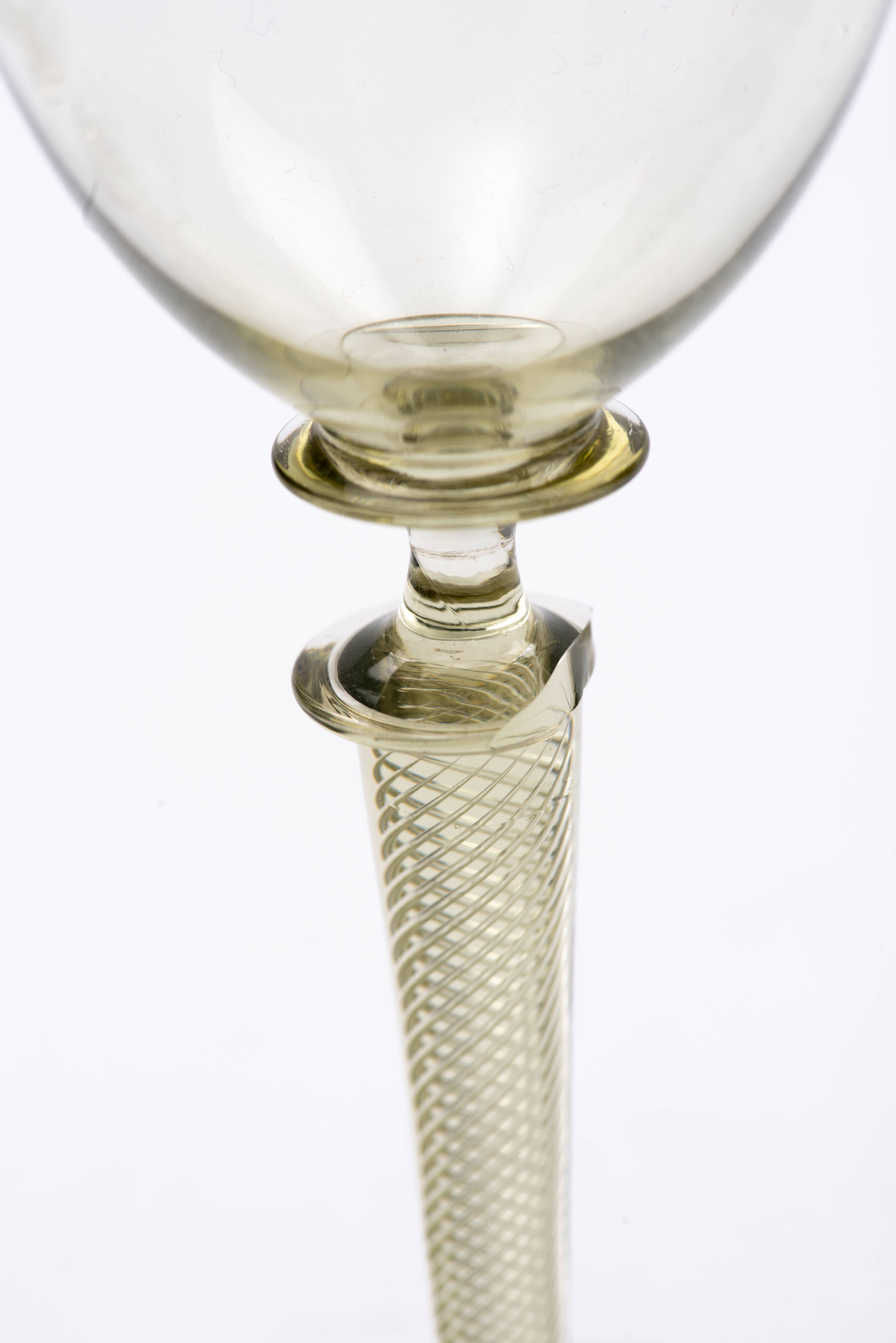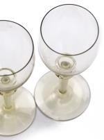 5 verres à vin blanc en verre légèrement fumé à et pied à décor torsadé. Peut-être allemand ou italien, XIX-XXe