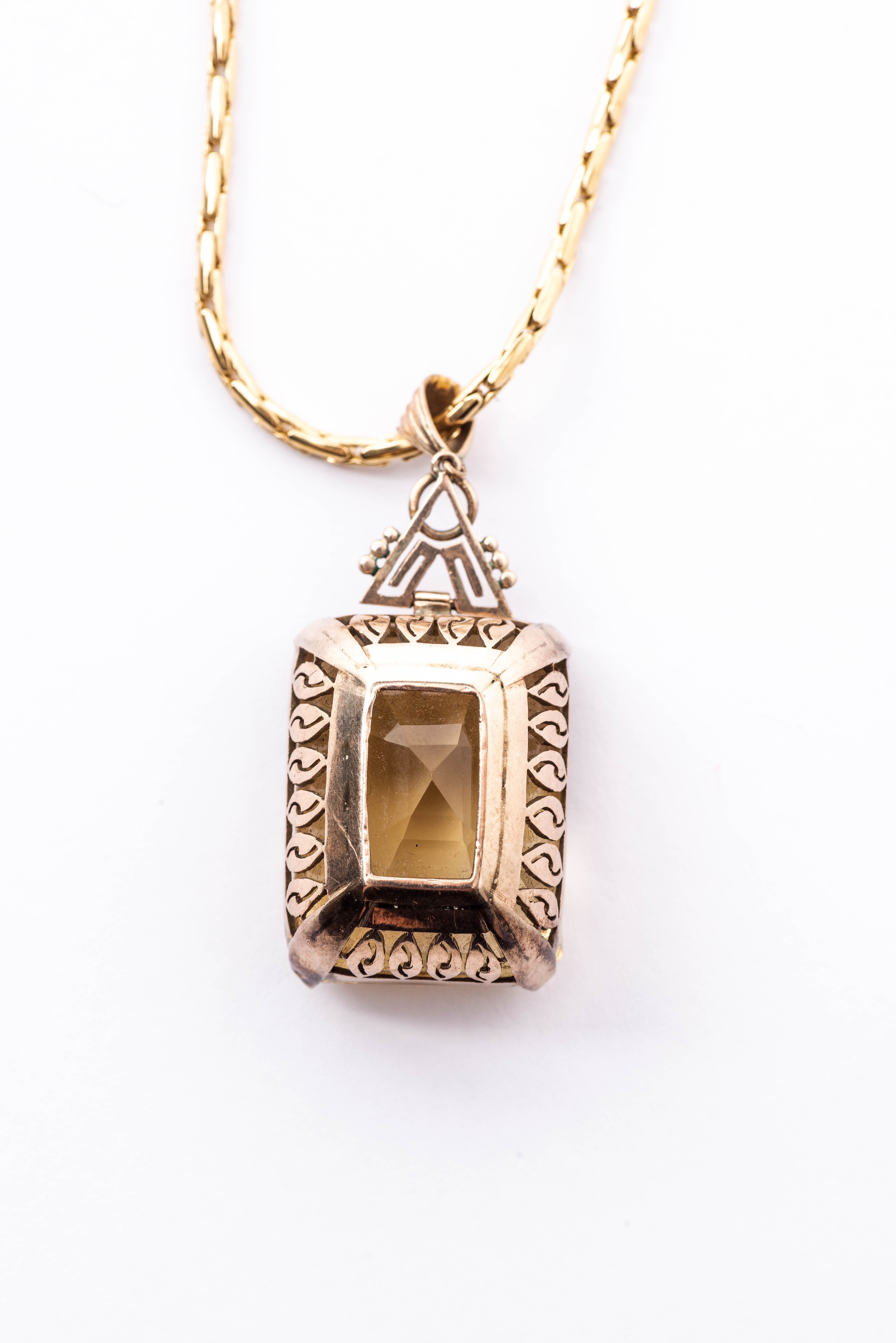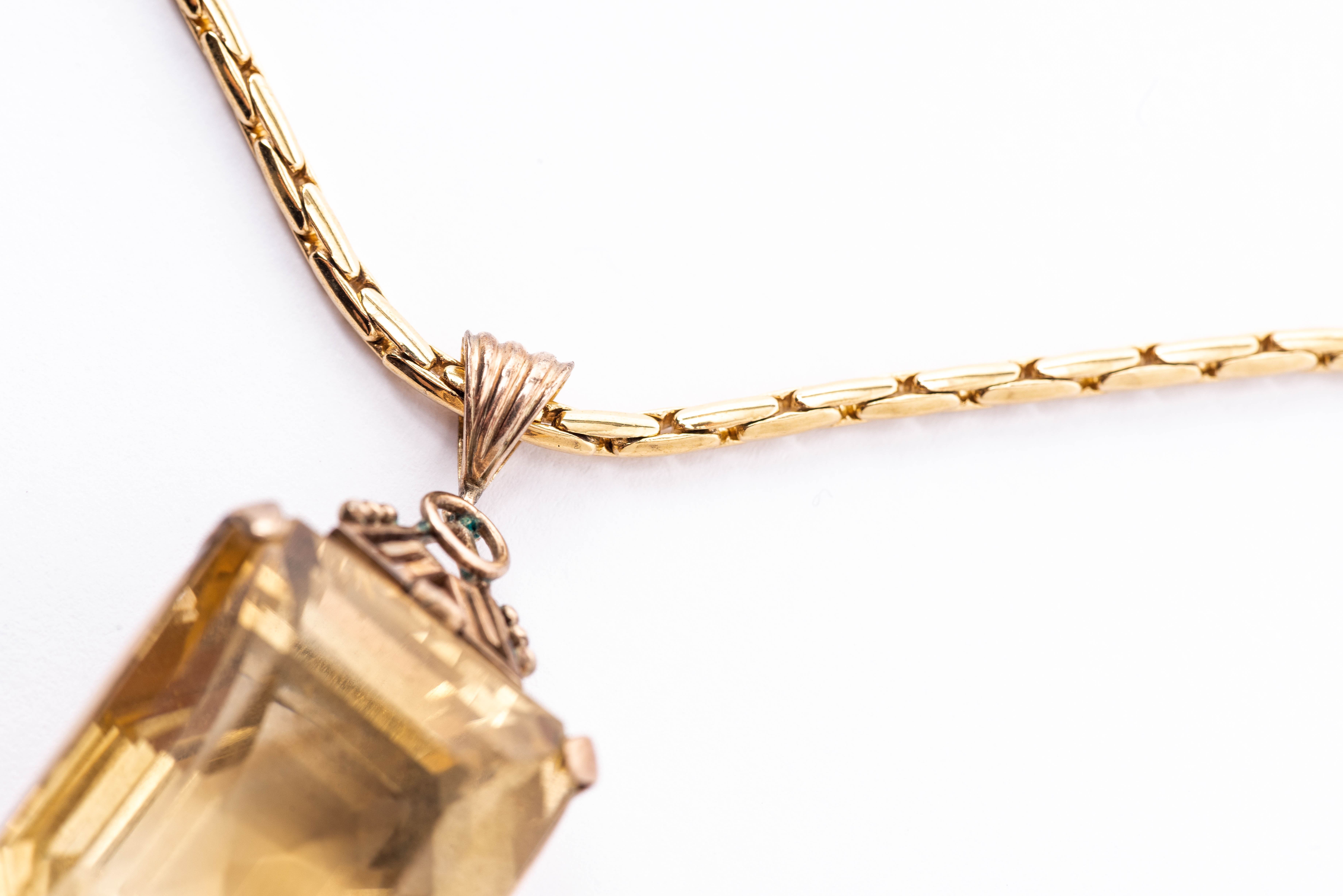 Pendentif en métal doré avec une grosse citrine