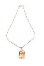 Pendentif formé d'une grosse citrine de forme coussin de 20 ct à montage à griffes en vermeil rose