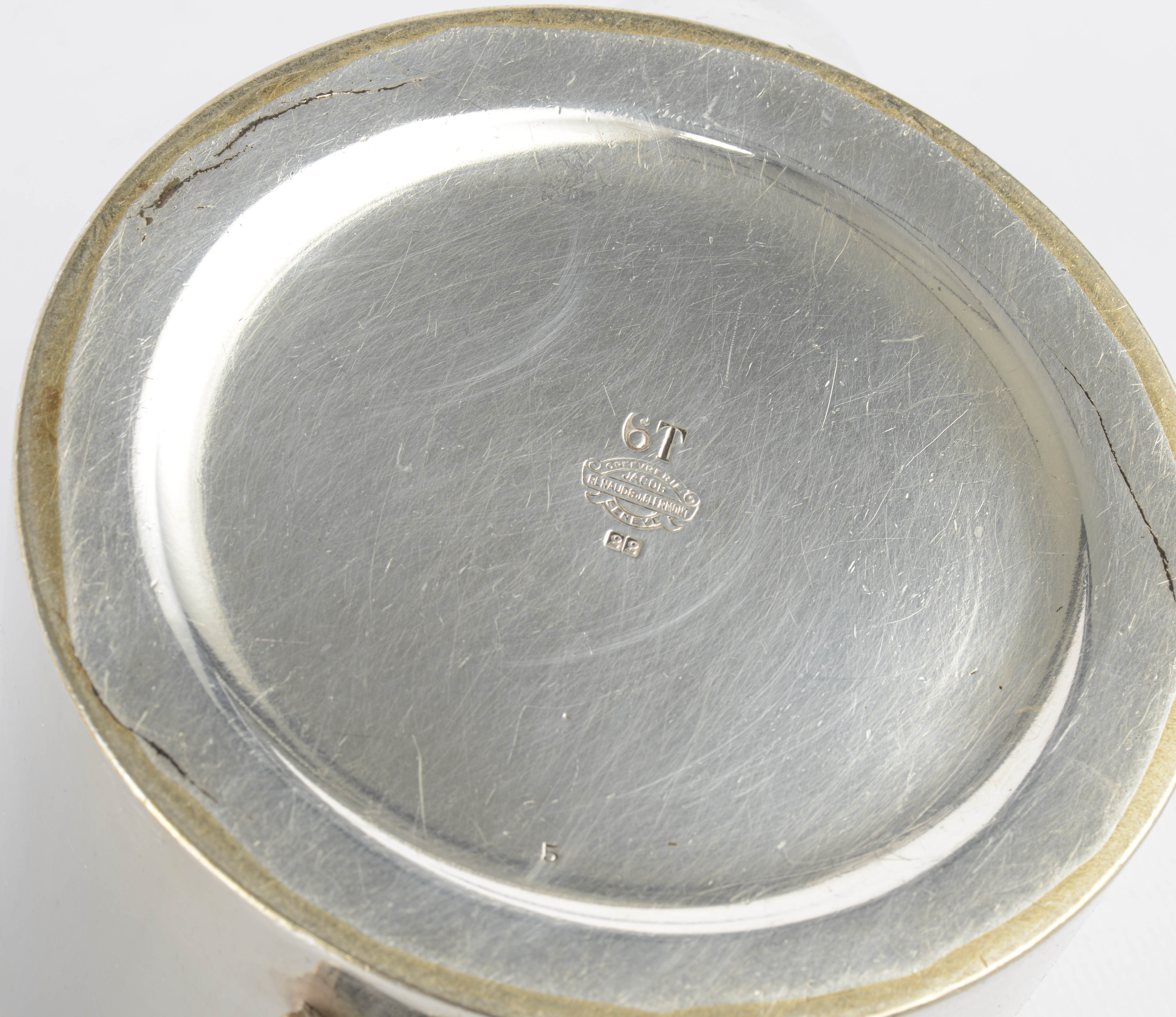 1 sucrier en métal argenté avec blason au chien couronné de l'Hôtel Meurice à Paris, orfévrerie Jacob, Renaud & J. Clermont, Genève