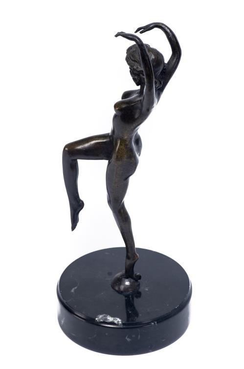 Anonyme, femme en bronze à patine brune sur un socle circulaire en marbre noir