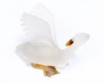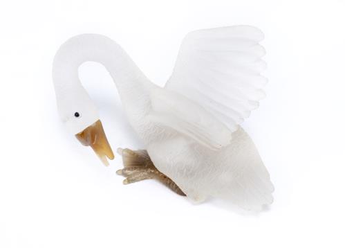 Cygne en cristal de roche sculpté, bec et pattes en agate H.9x12 cm