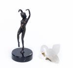 Anonyme, femme en bronze et cygne en cristal de roche et agate