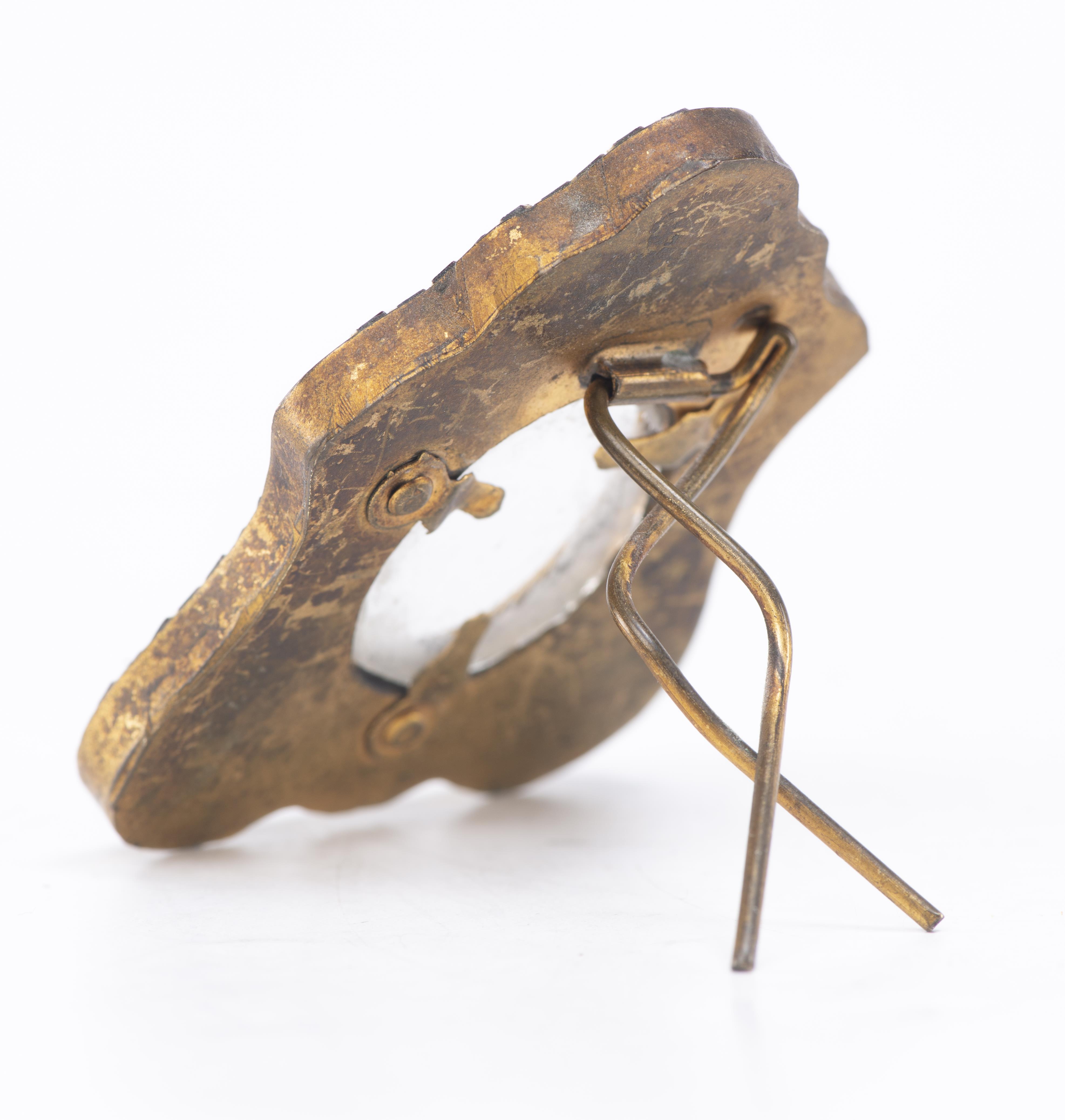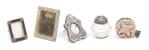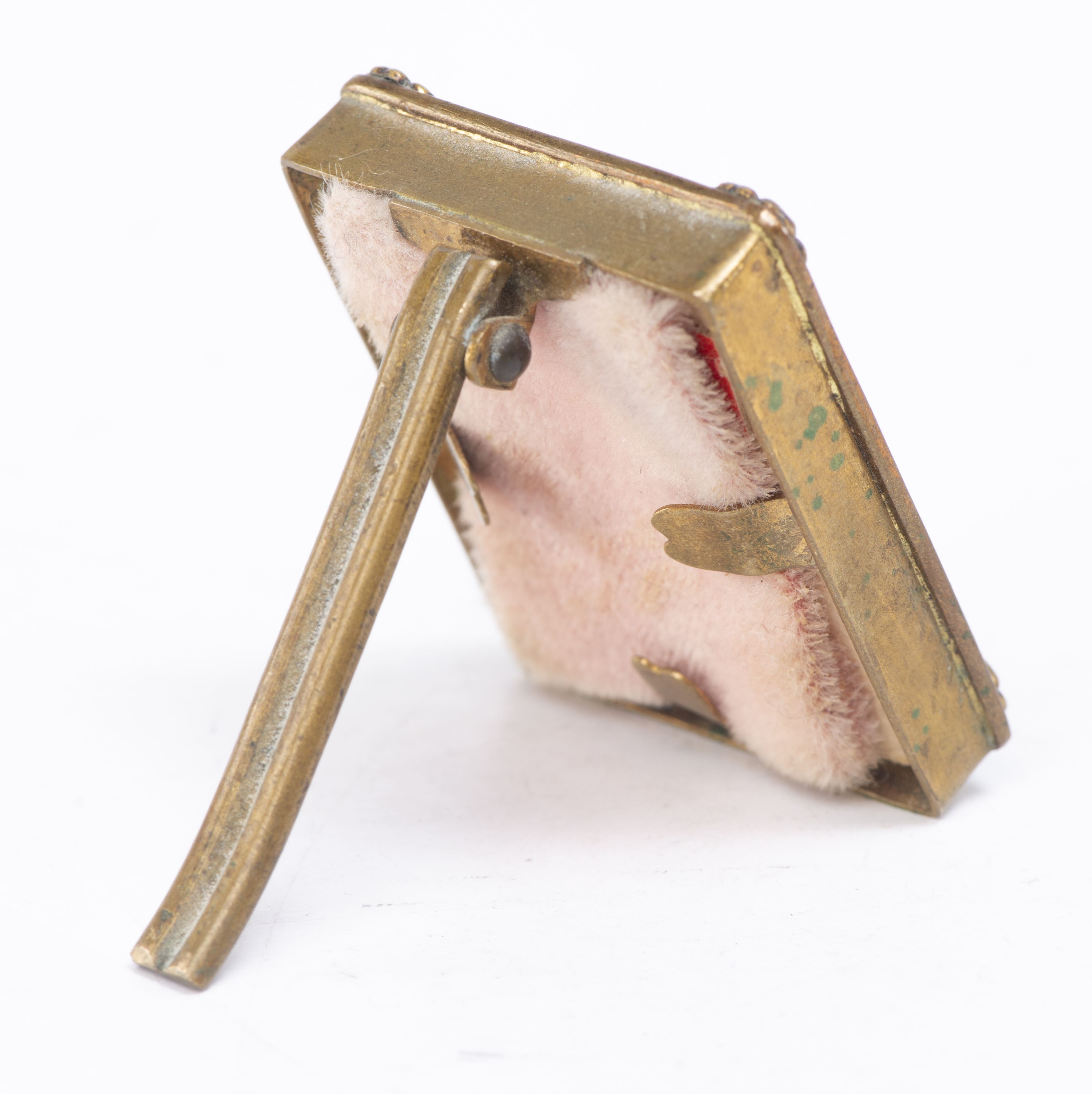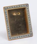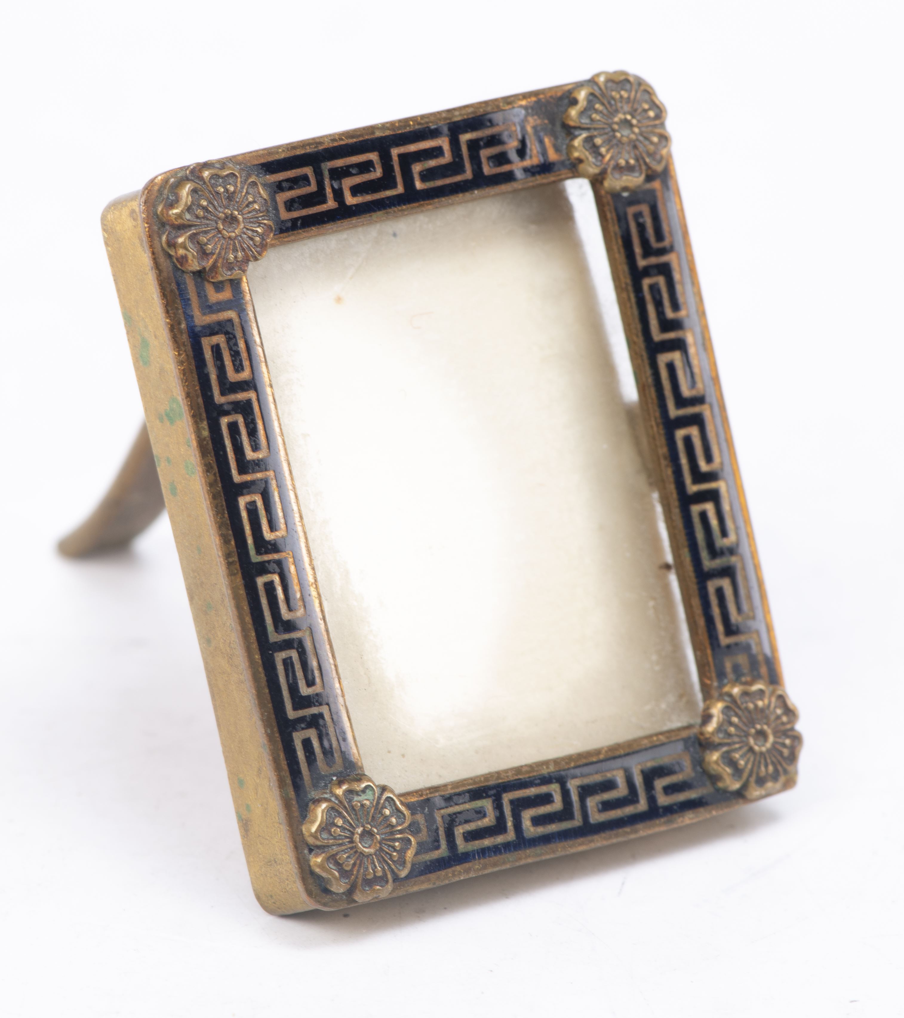 - Un cadre en émail noir orné d'une fleur à chaque coin, 4.5x3.5 cm