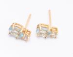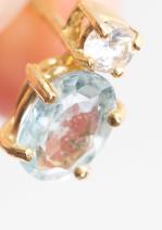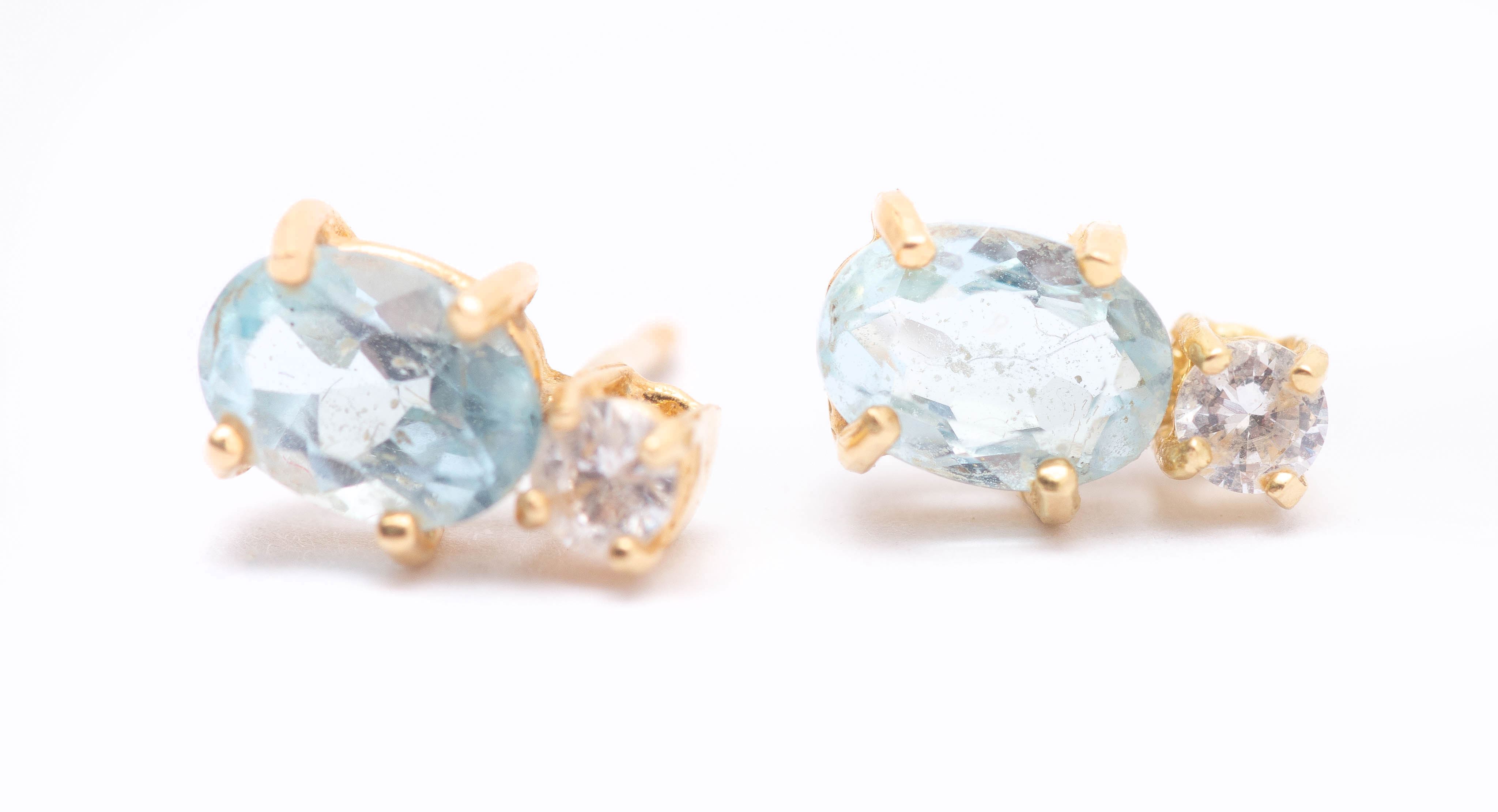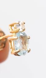 Paire de clous d'oreilles en or jaune .750 avec 2 saphirs blancs de 0.07 ct et 2 aigues-marines de forme ovale de 0.5 ct chacune.