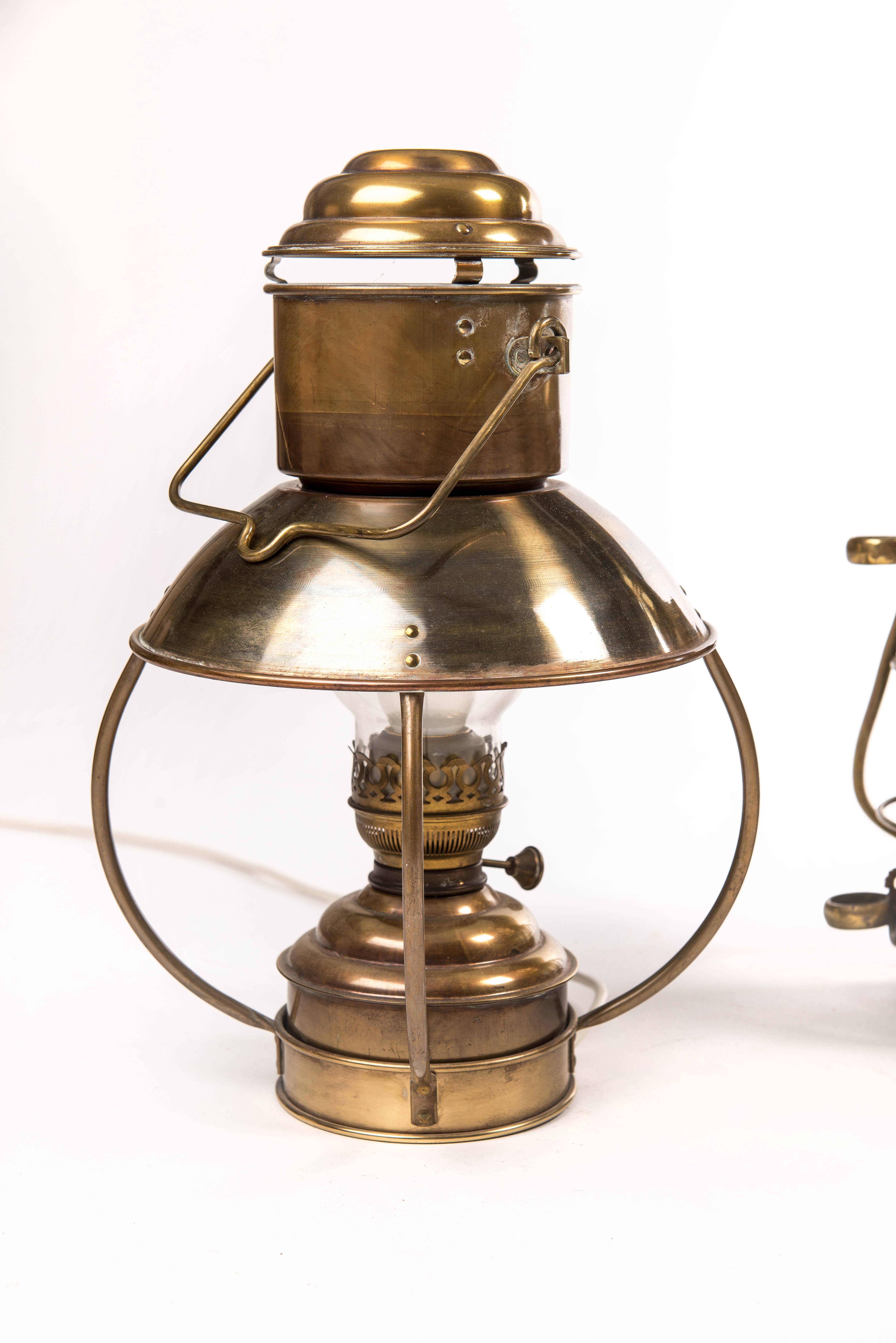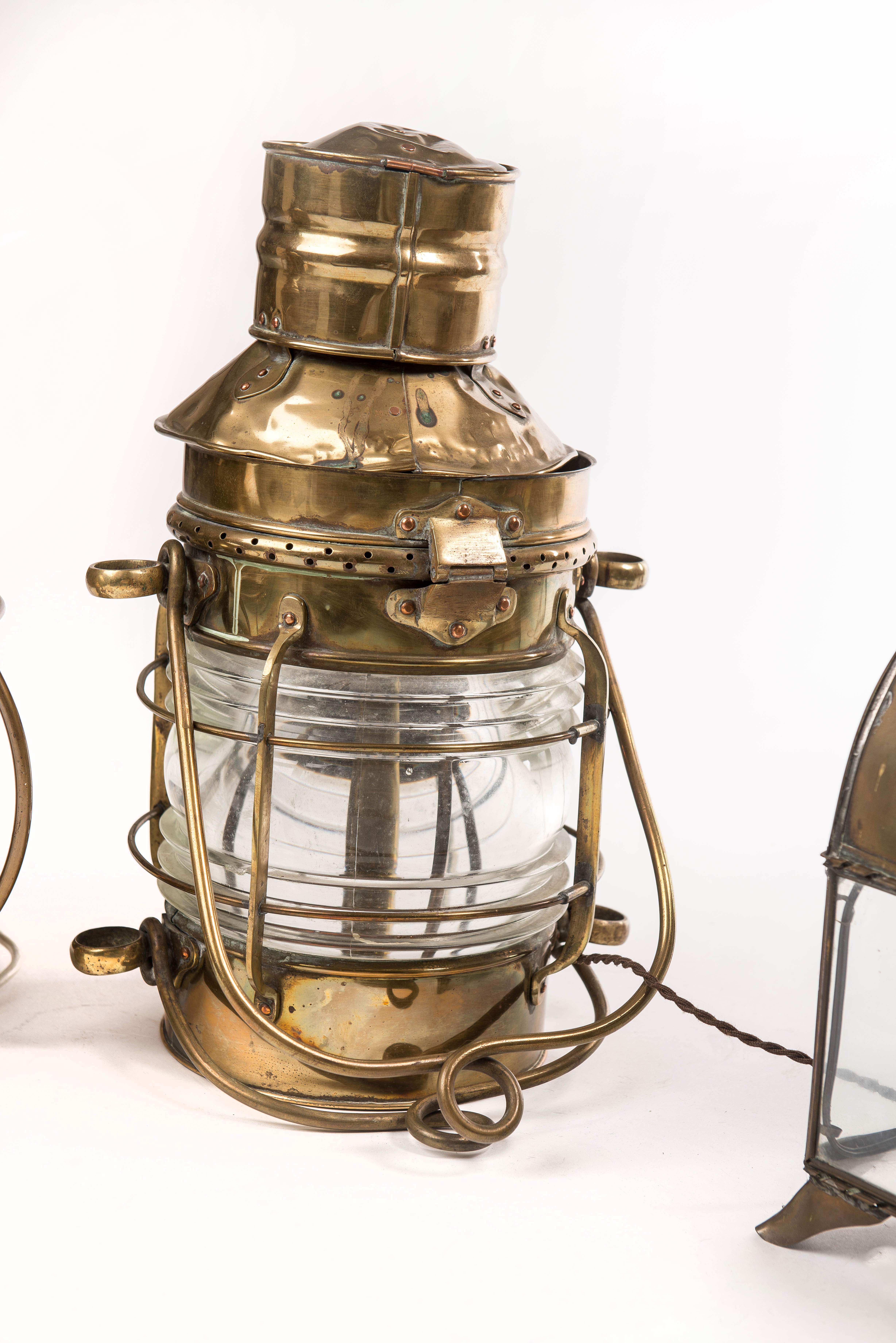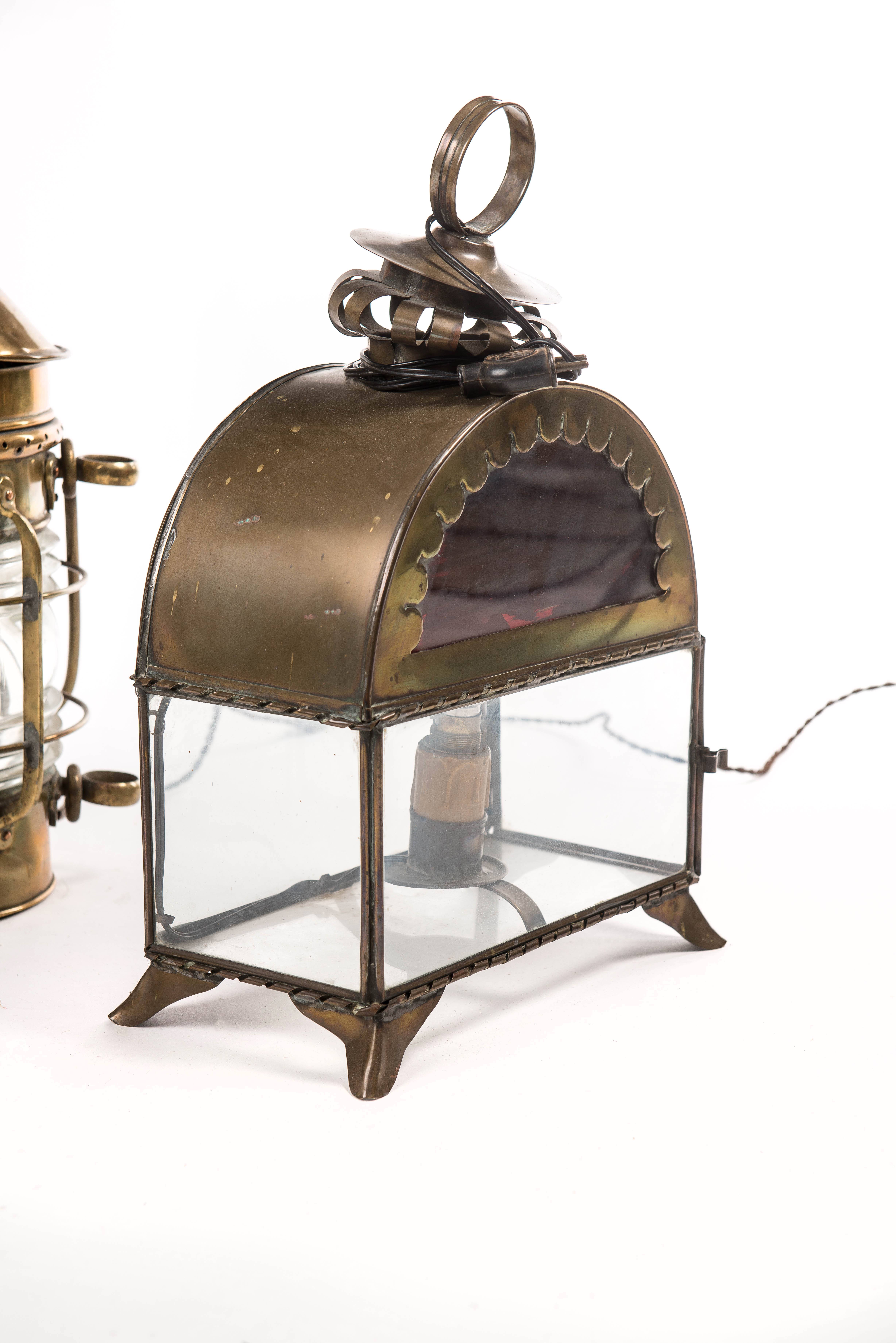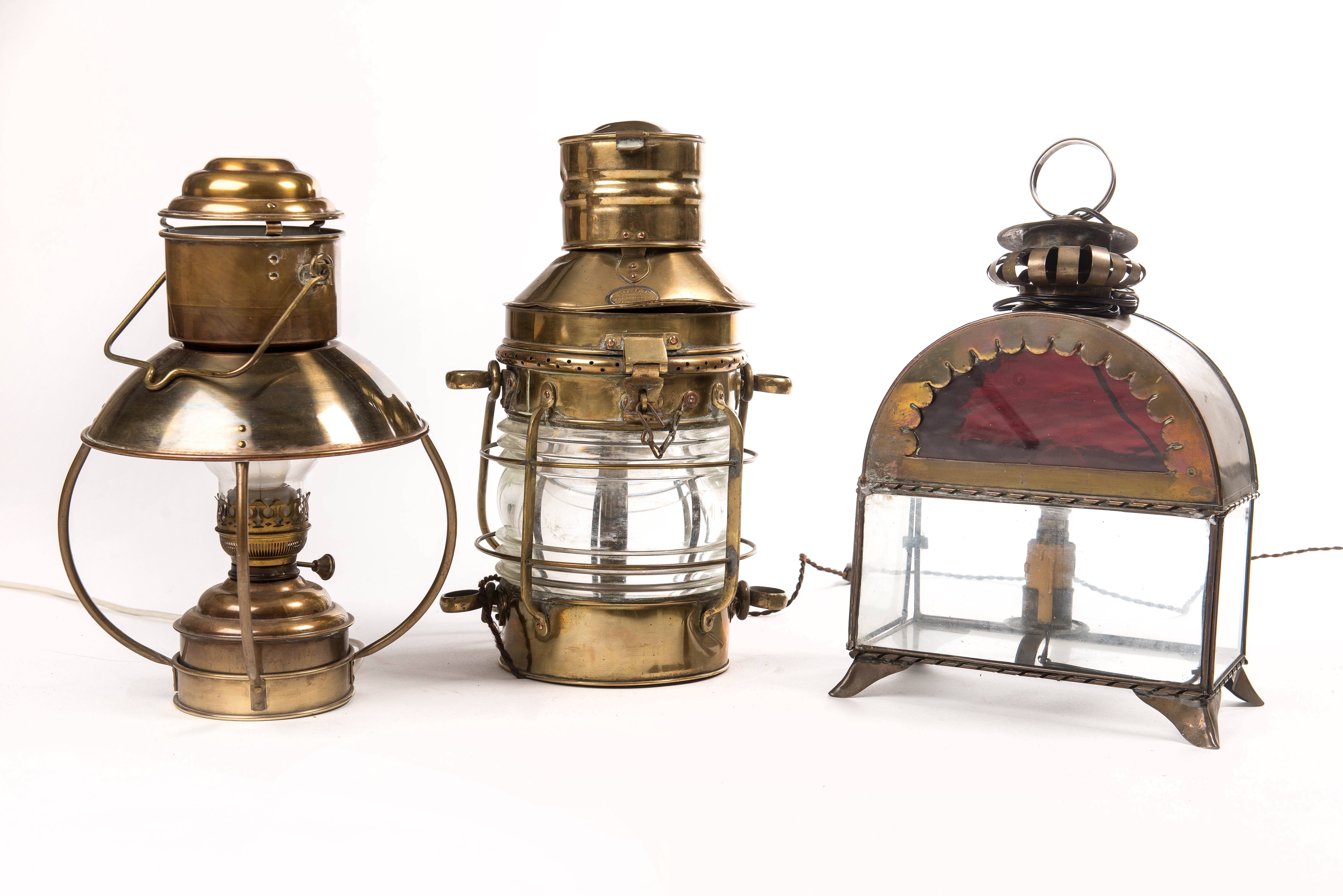Trois lanternes électrifiées en laiton et verre, comprenant :