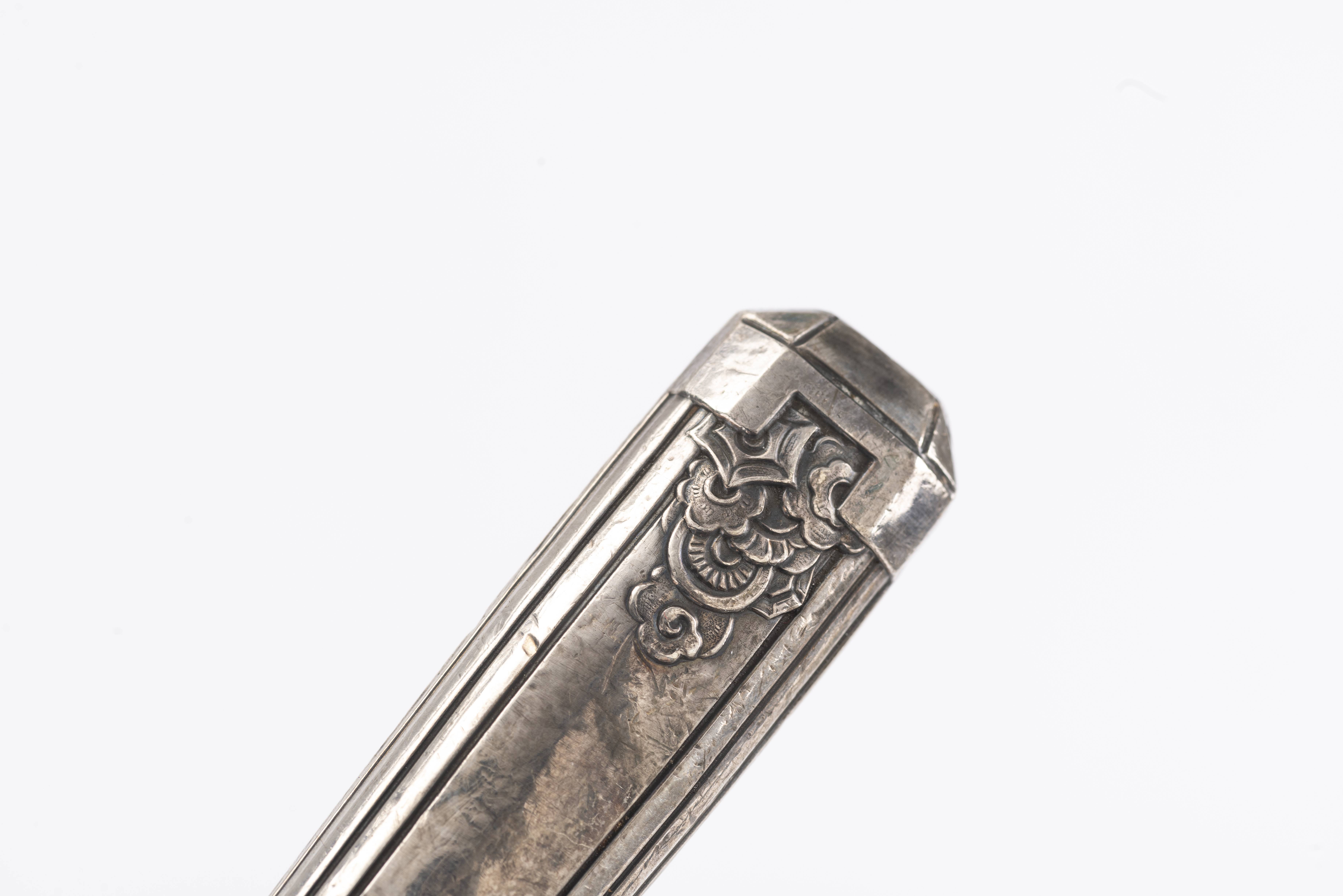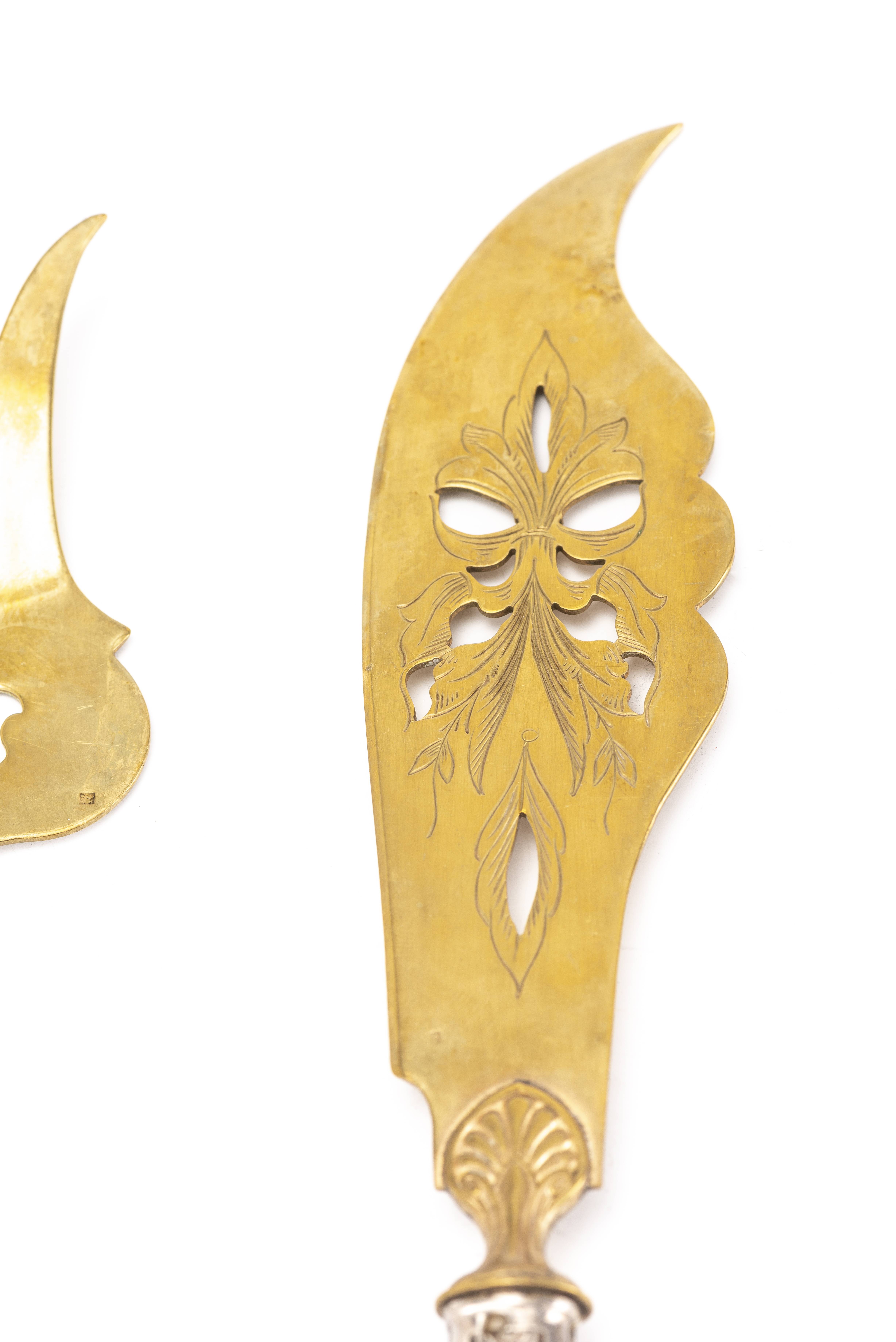 Grande fourchette et grand couteau de service à poisson à manche en argent français 1er titre Art déco
