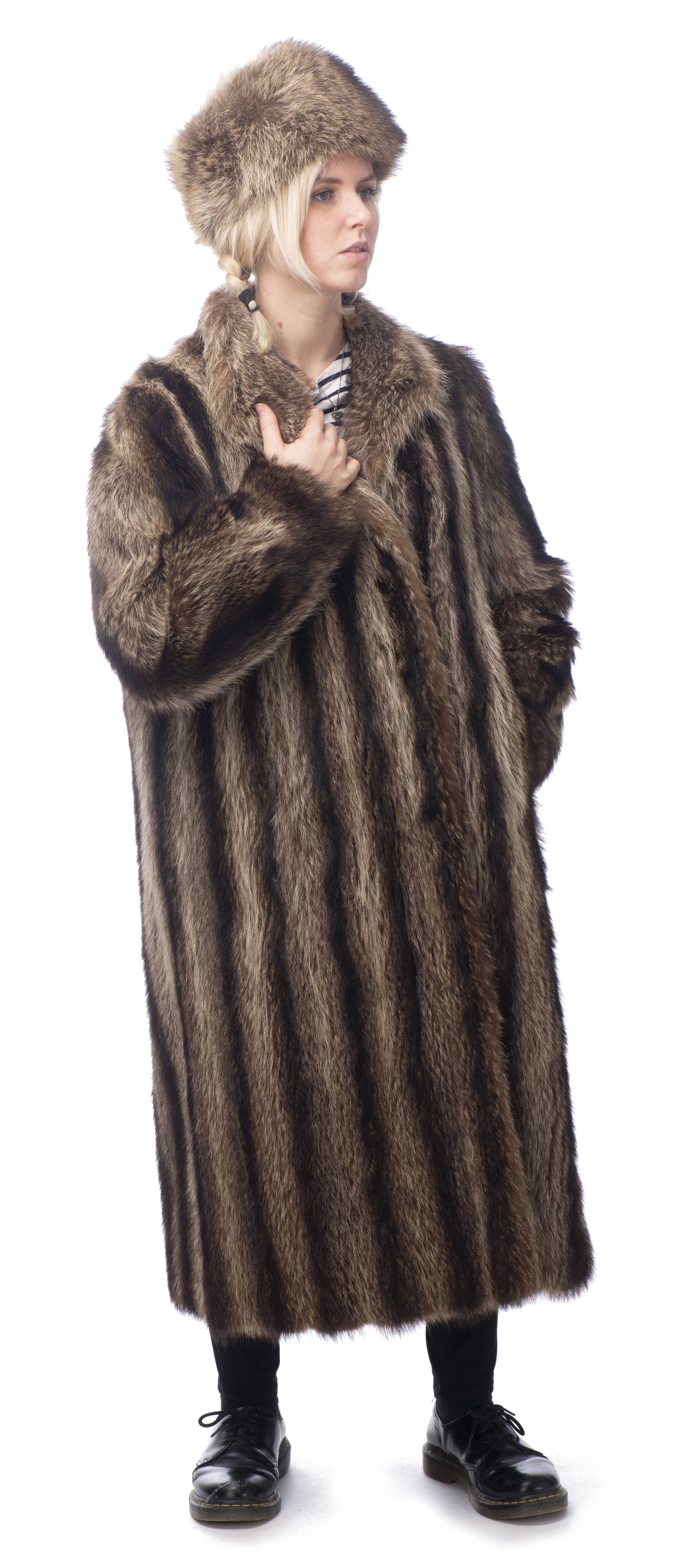 Manteau en marmotte "J. Ficontas Lausanne" T.38-40 avec sa toque "The fur Gallery"