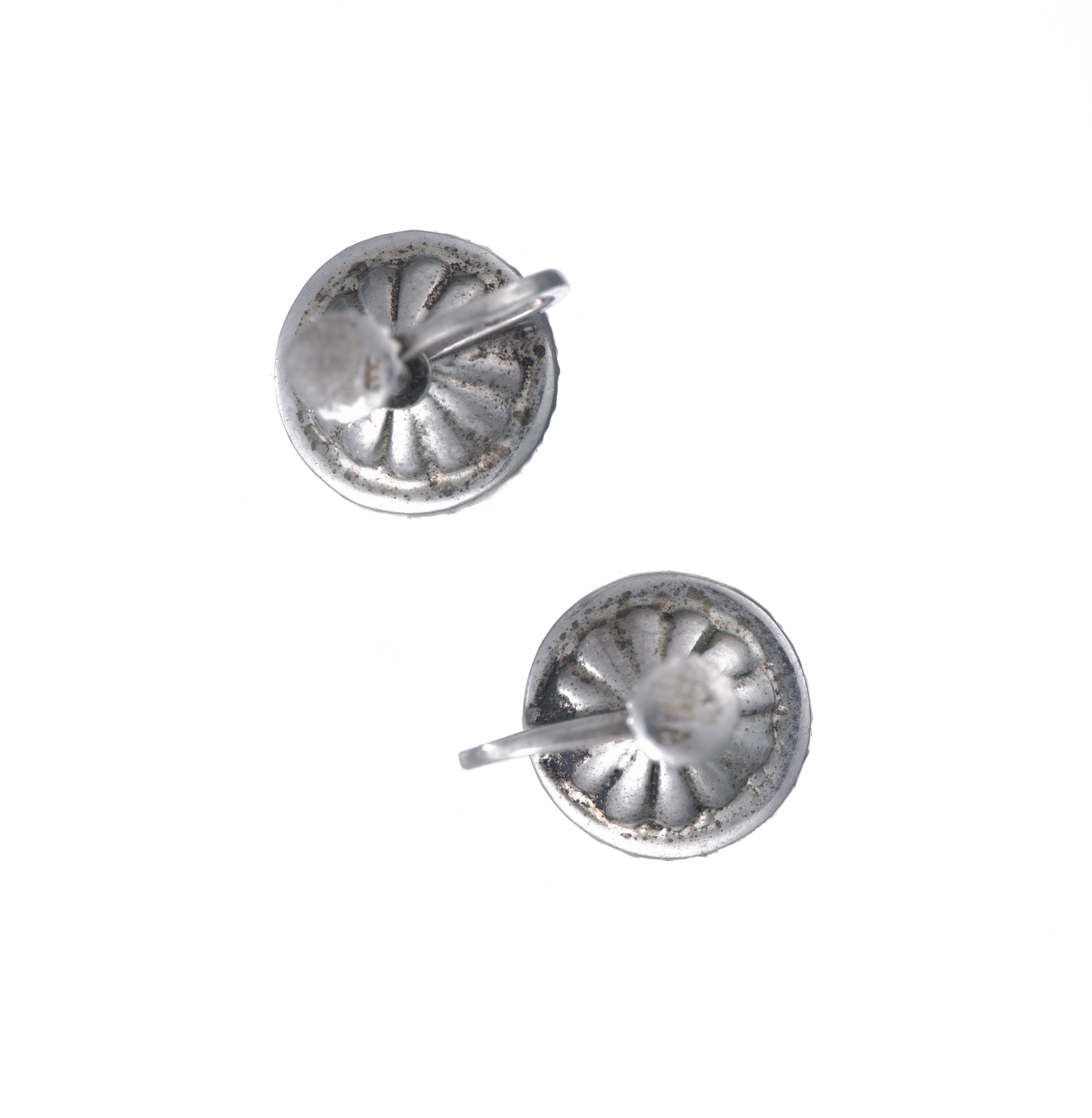 Paire de boucles d'oreilles en argent .935 avec deux perles Mabé de 1 cm de diamètre entourées de markesites facettées