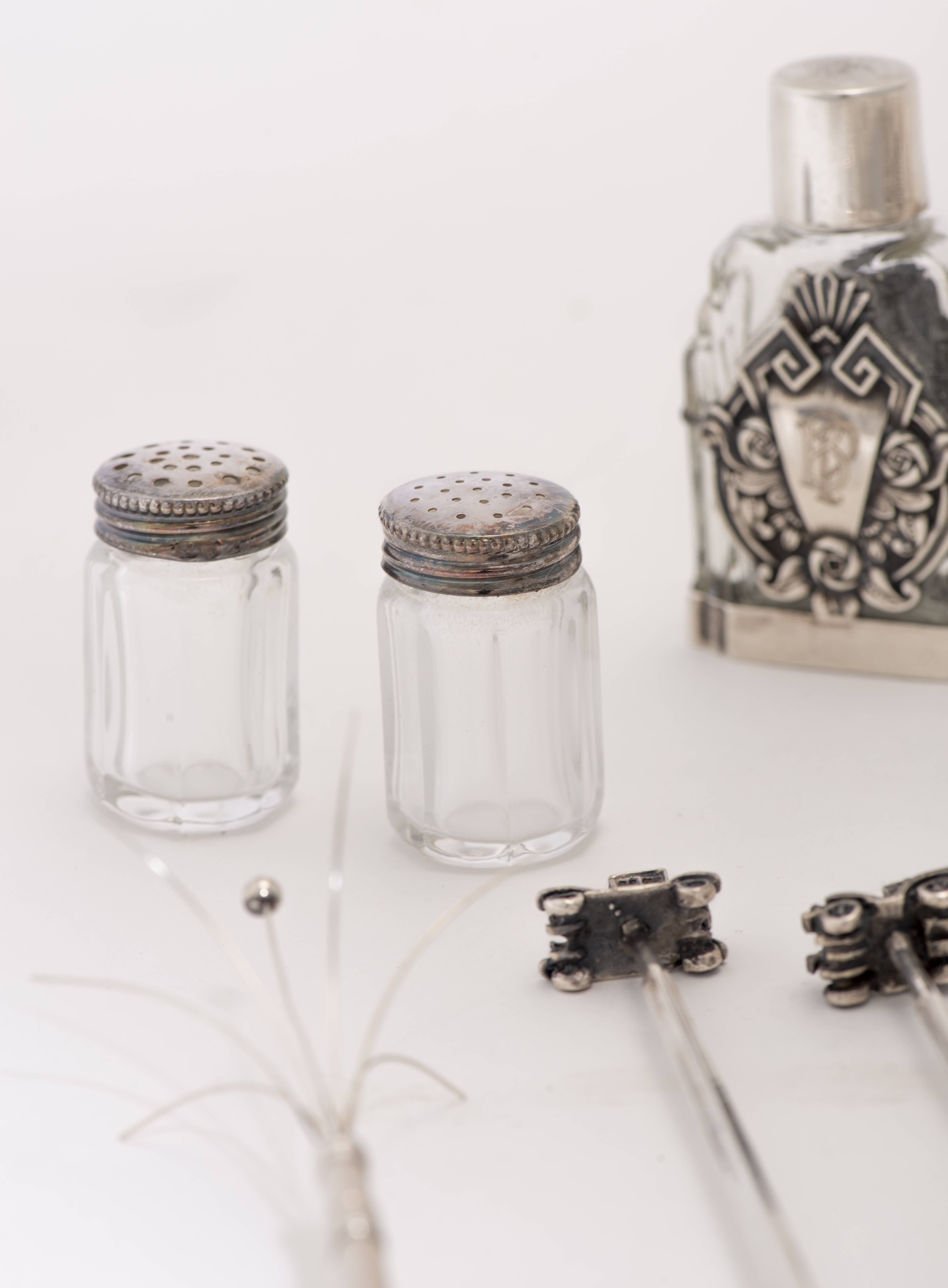 - 1 autre flacon de parfum à monture en argent .925 (poids total 56.8g