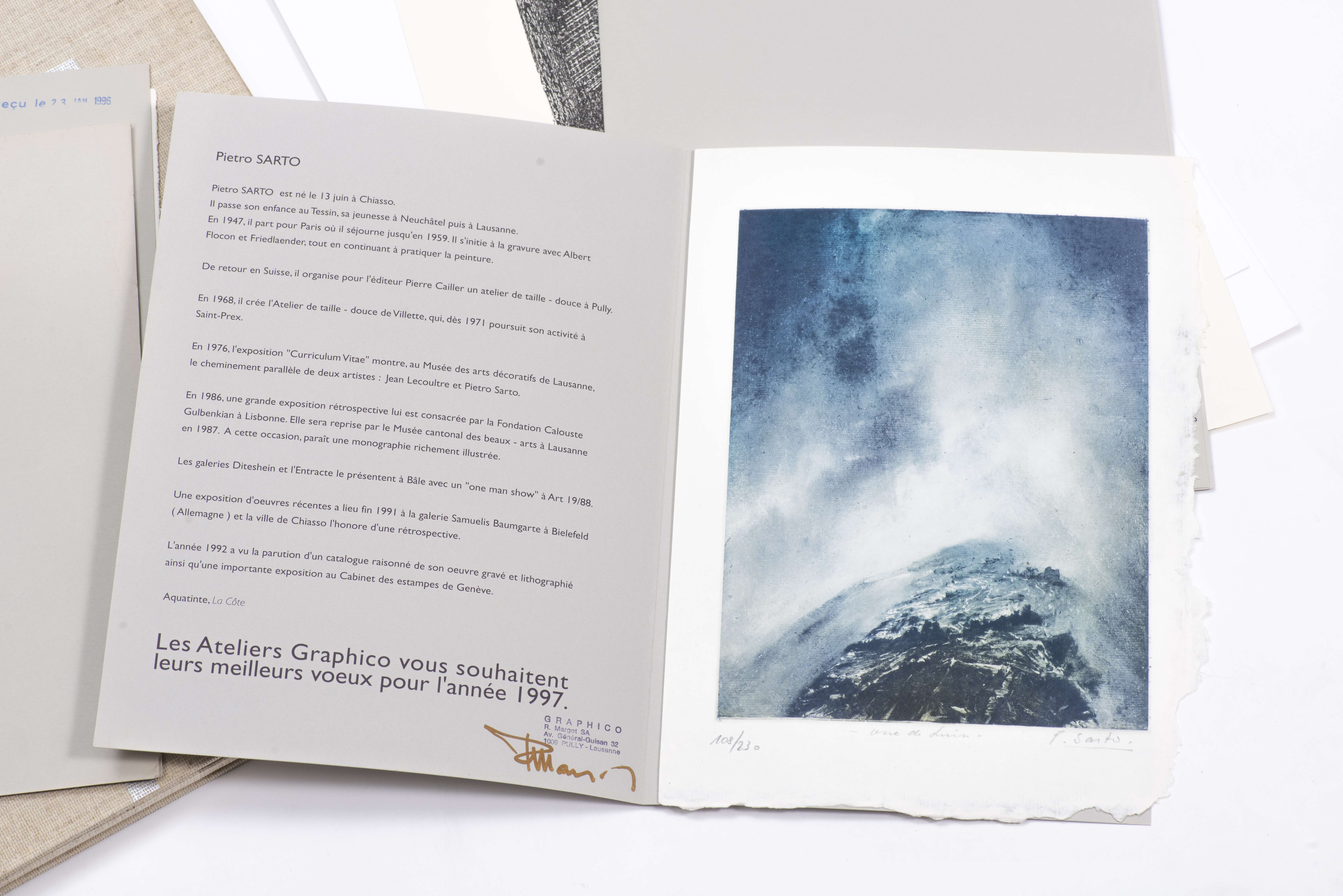 Porte-feuille d'œuvres originales de peintres et graveurs valaisans édité par la platrière SA pour le 25e anniversaire de la fondation, 1987, ex. n°25, 14 planches