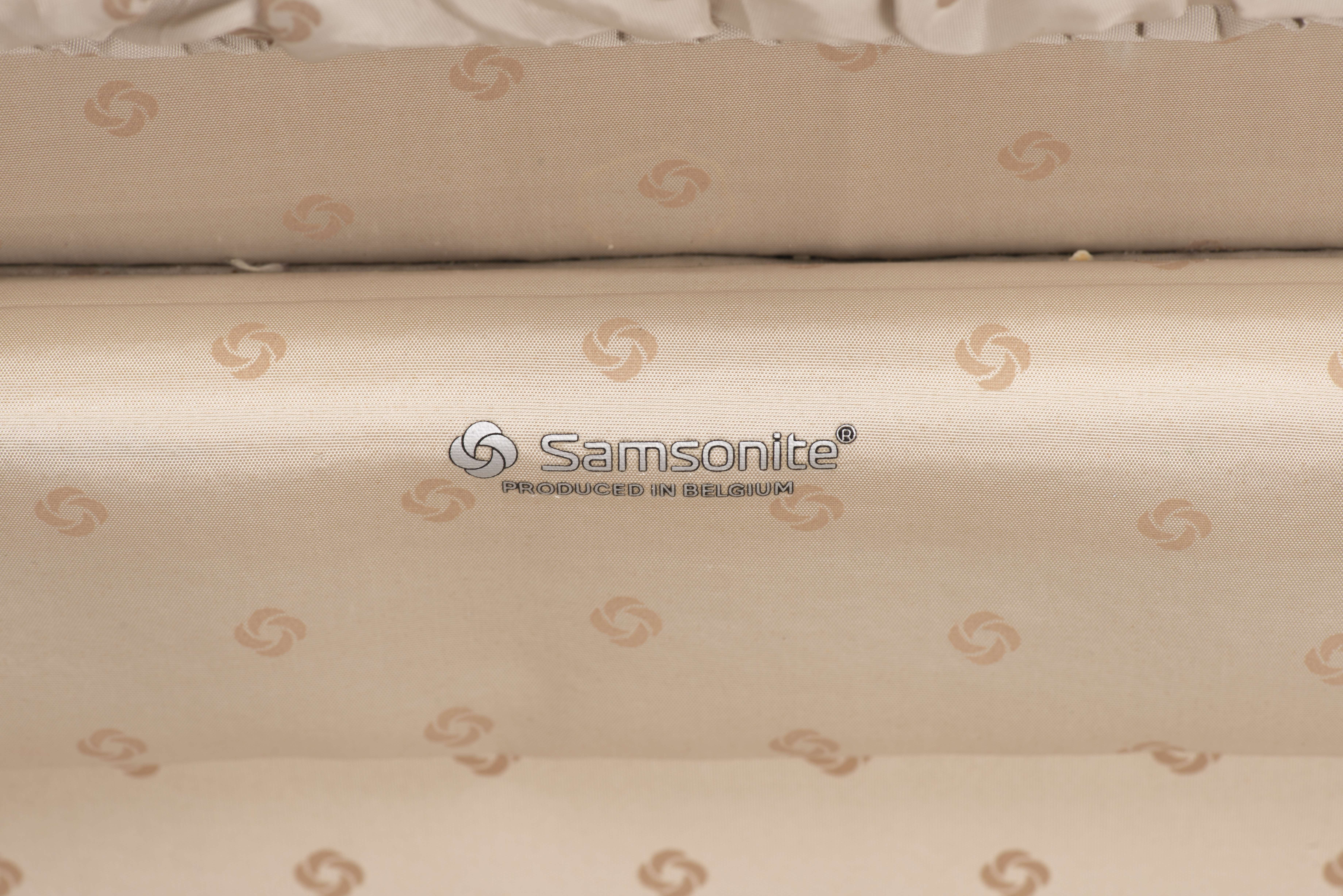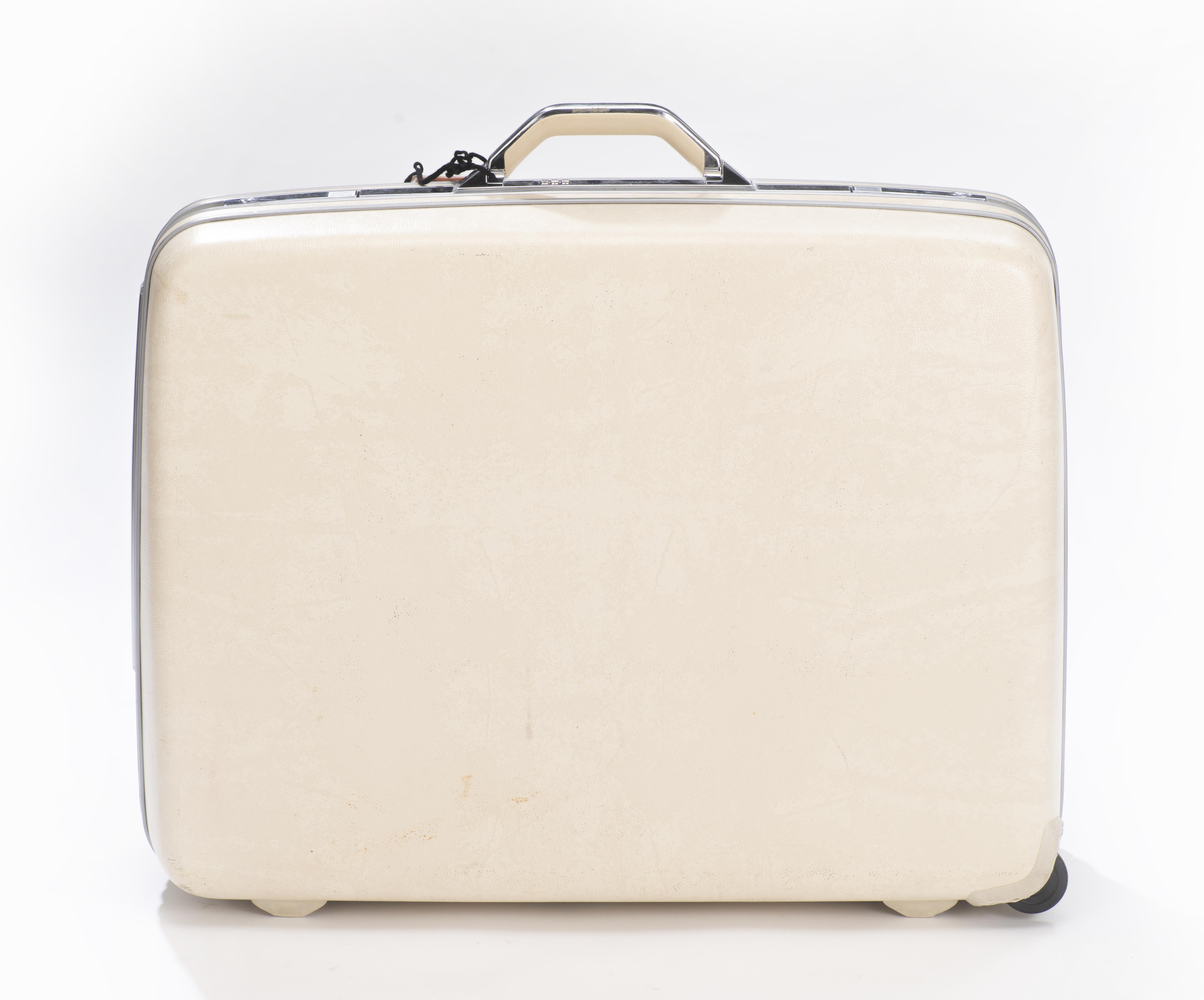 - une valise rigide blanche avec code à 4 chiffres et 2 roulettes, H. 53x62x21 cm