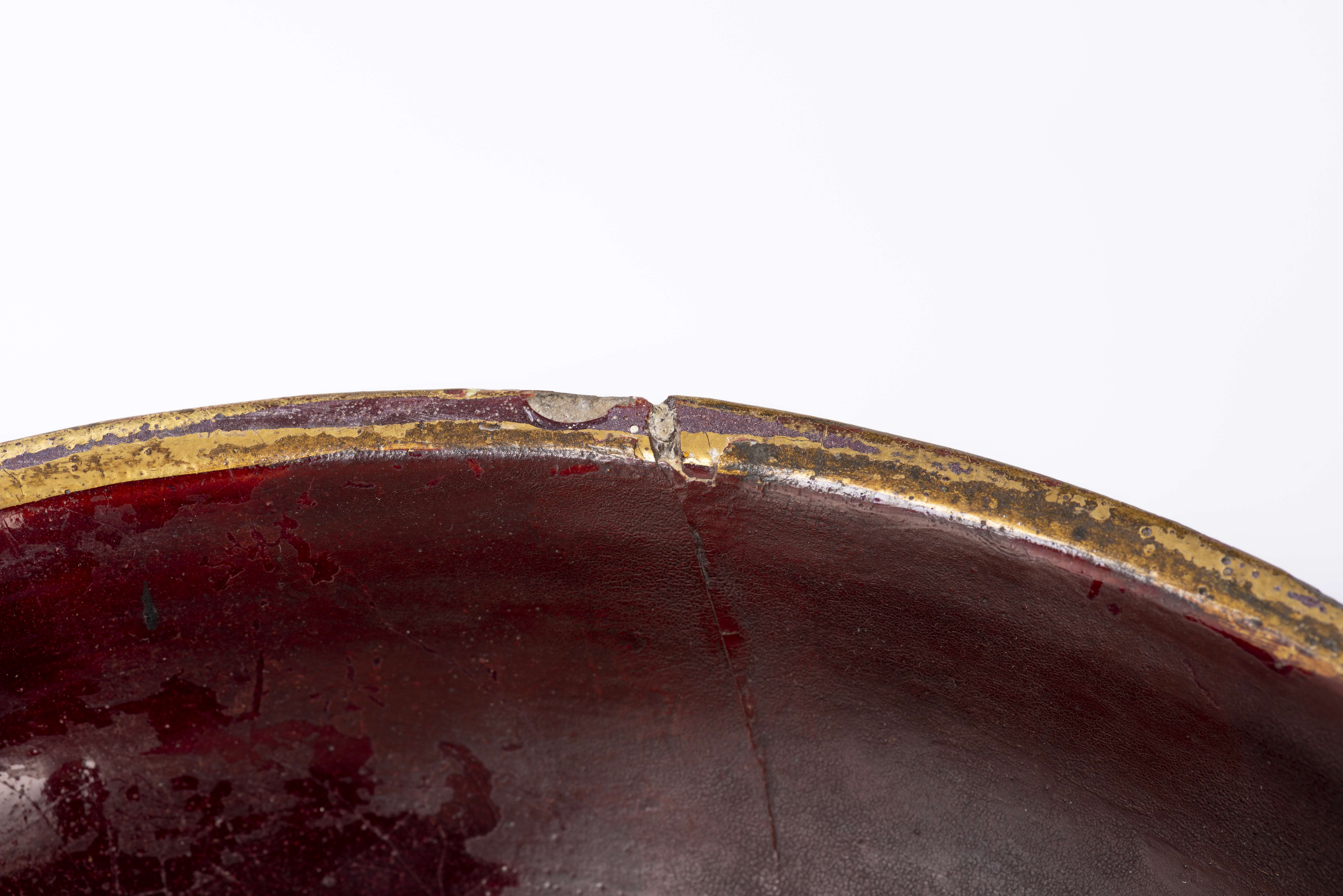 Grand vase en faïence de Tours à décor de dragon couronné de témoins aux dauphins et de feuillages fleuris dans des médaillons sur fond rouge, 2 anses en forme d'animal stylisé, à col évasé terminé en coupelle, décor signé G. ASCH à Tours, avec médaillon héraldique de l'emblème de Henri IV avec salamandre couronnée, 3 feuilles de lys et la devise "Nutrisco et Extinguo", inscrit au dessous Le Havre.