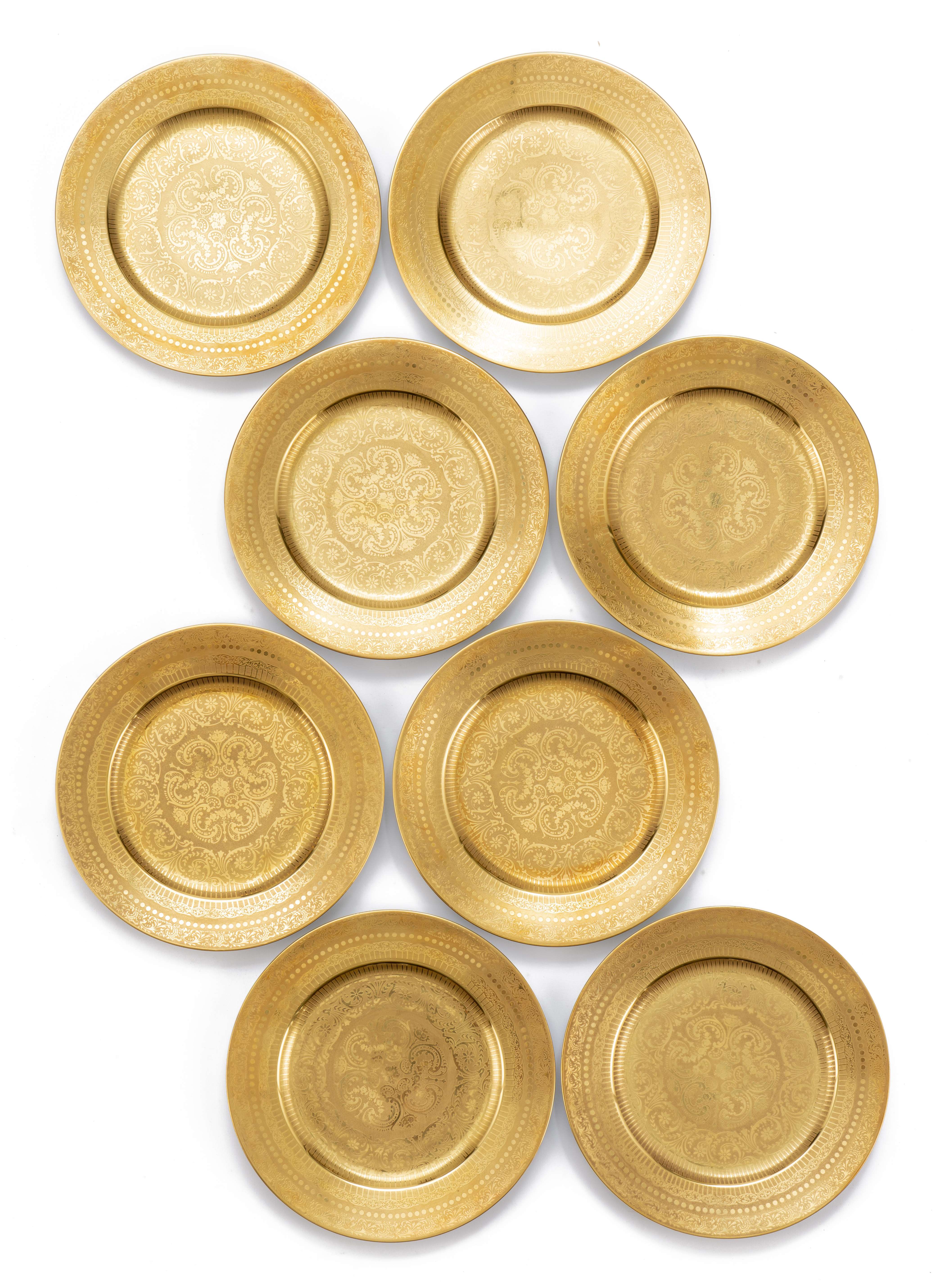 Ensemble de huit assiettes en porcelaine de Limoges à décor à l'or deux couches pour Odiot
