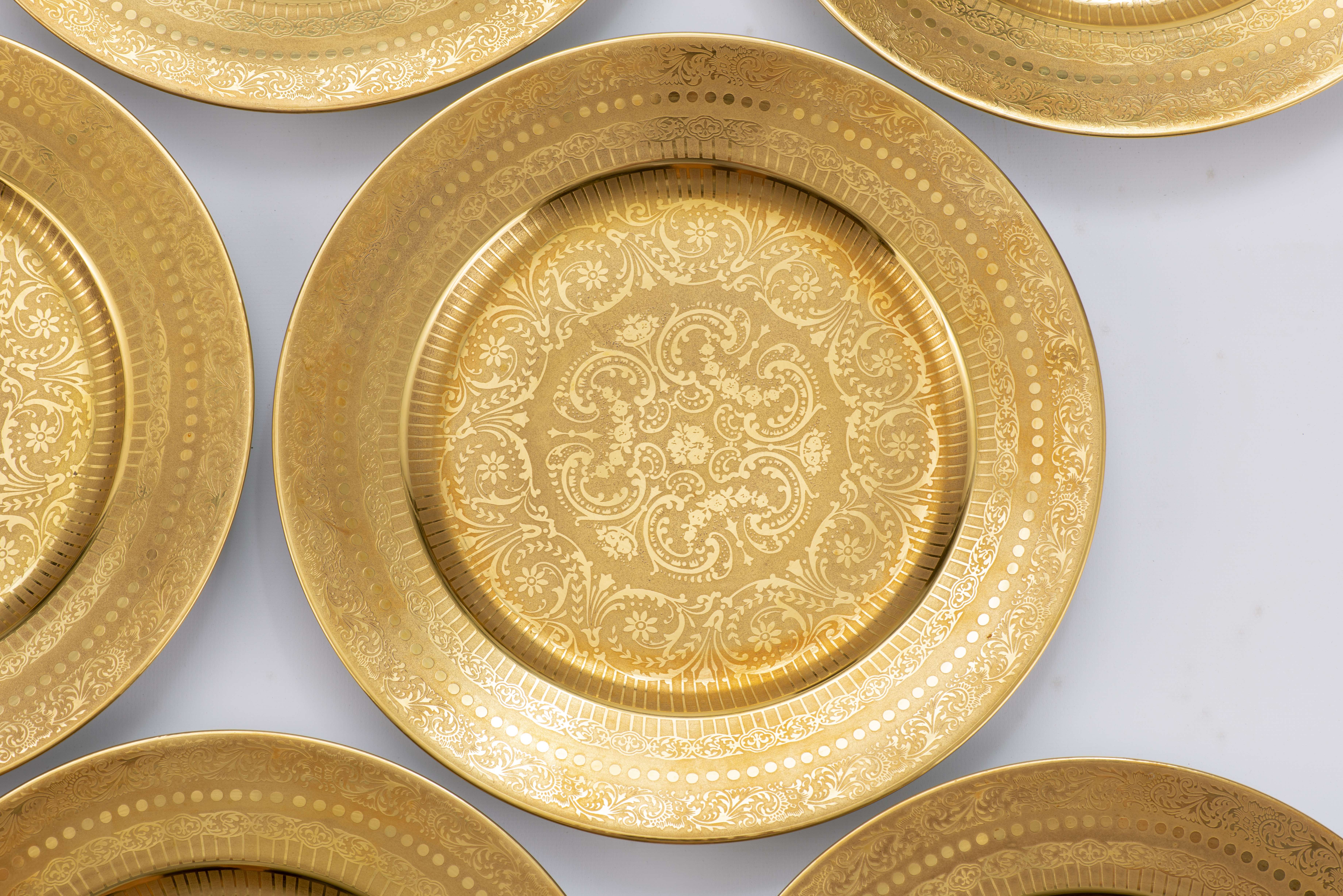Huit assiettes en porcelaine de Limoges à décor à l'or 2 couches pour Odiot.