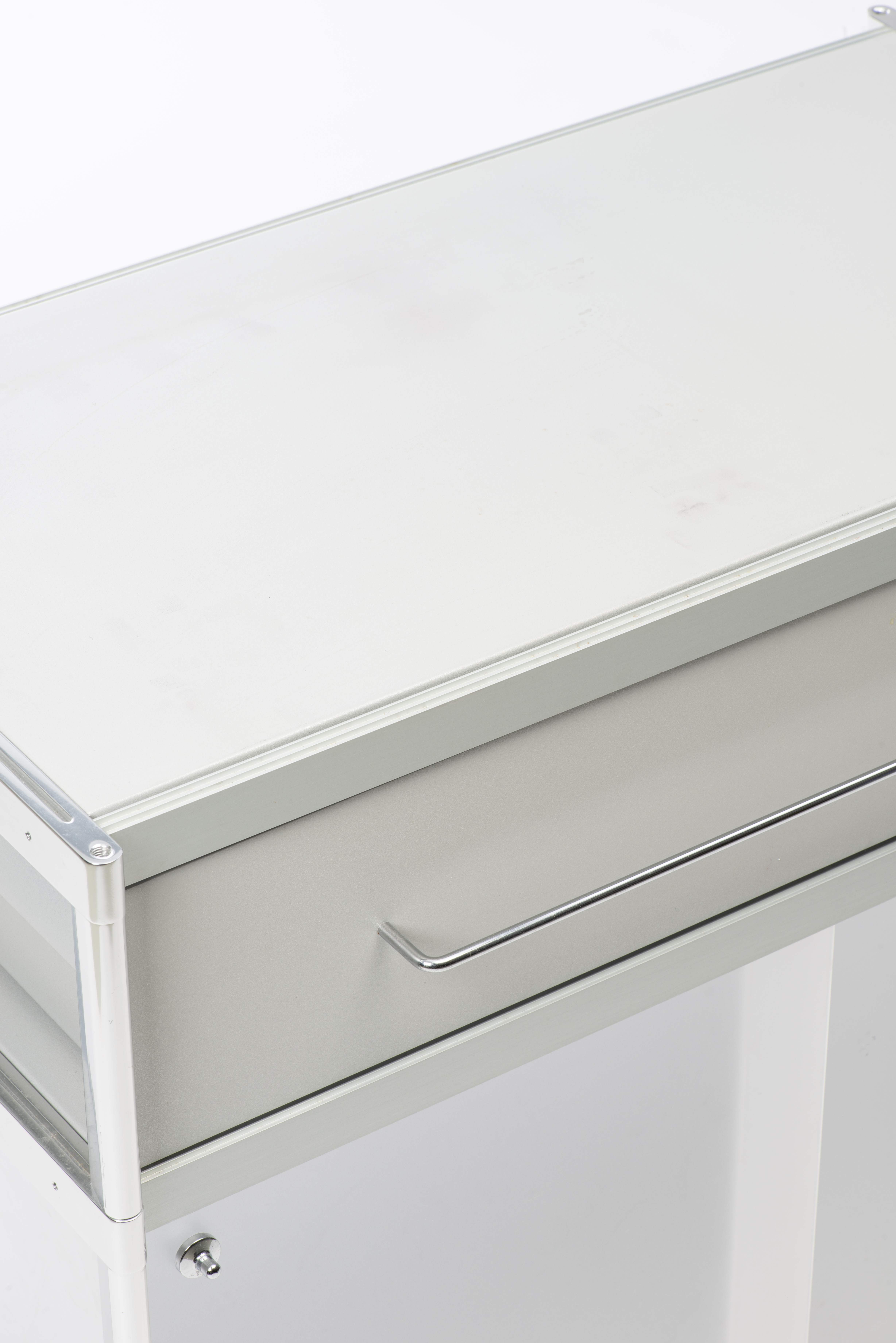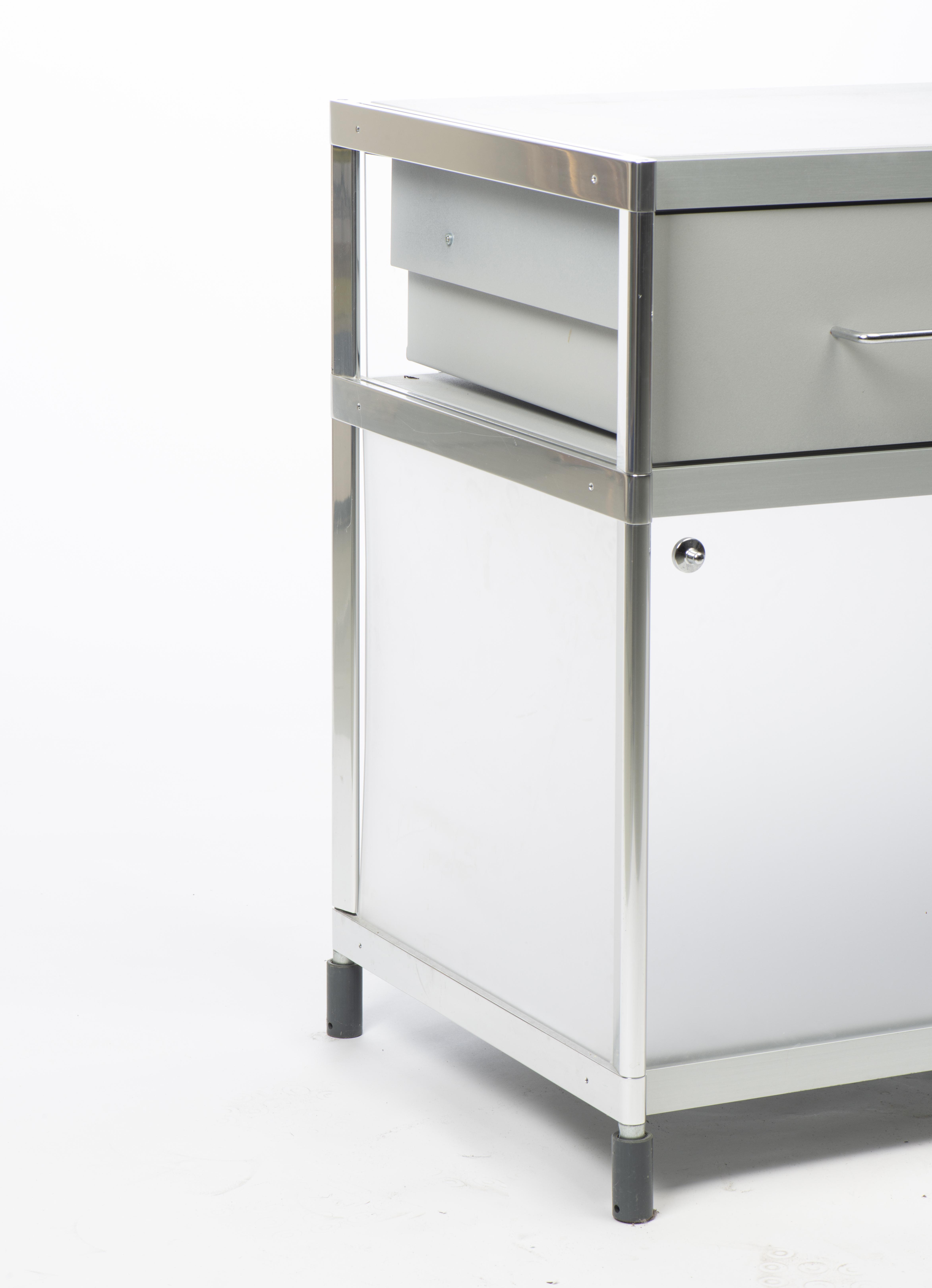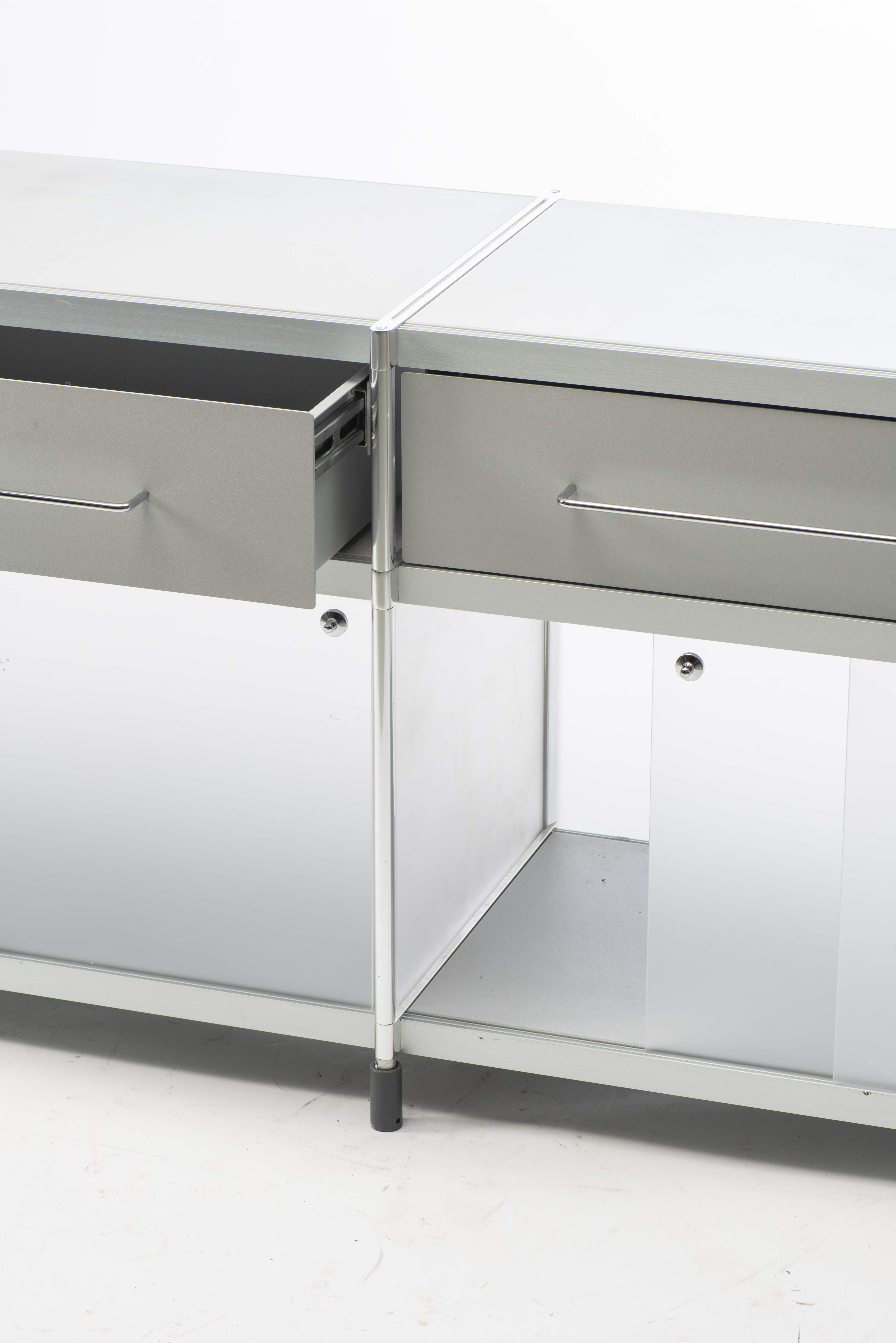 Alfredo HÄBERLI (né en 1964), Buffet modèle "SEC SID007 ", éditions Alias, à deux caissons en méthacrylate et structure en profil d’aluminium extrudé chromé, avec des éléments moulés sous pression. Ouvre en façade par deux portes coulissantes.