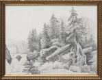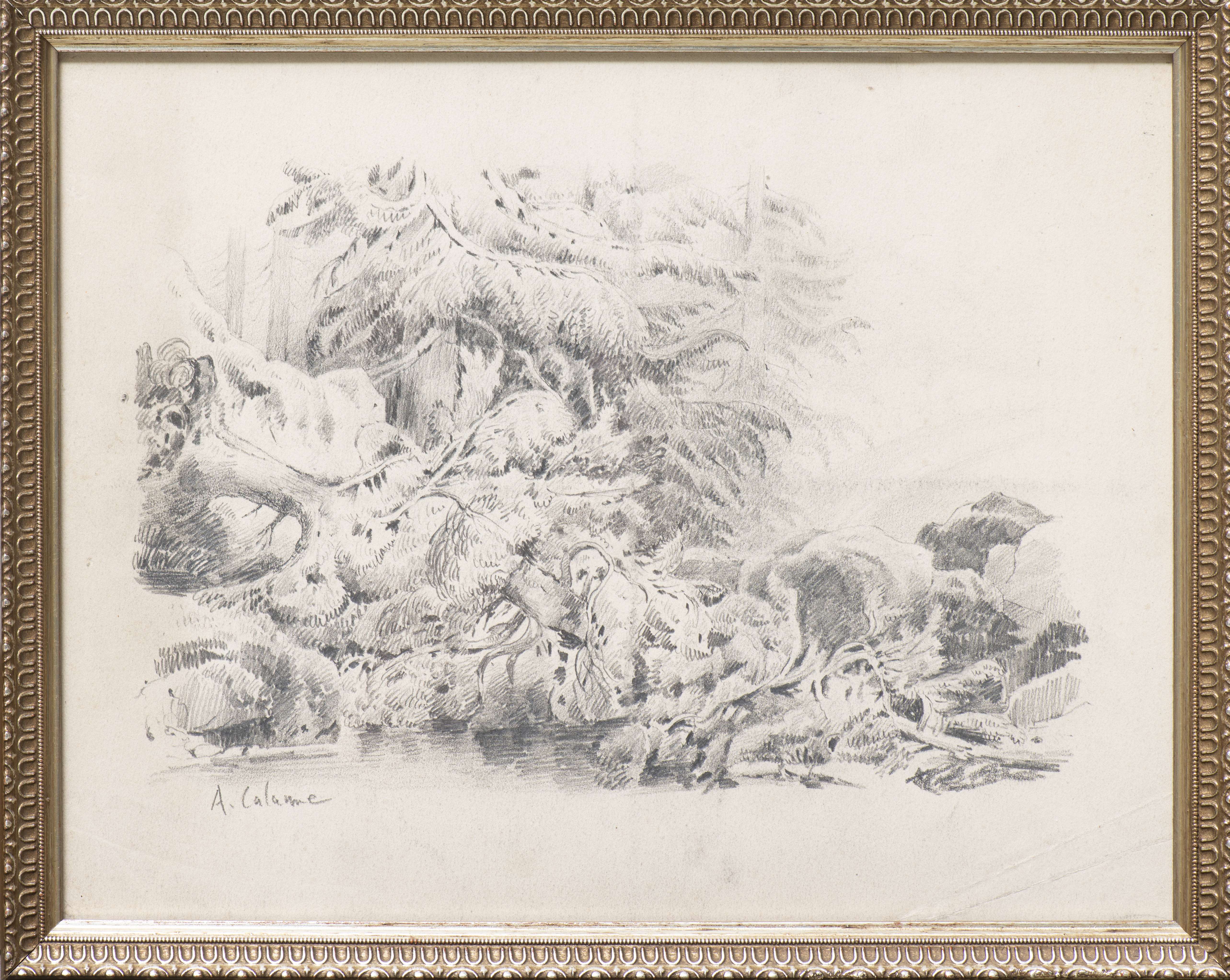 Arthur CALAME (1843-1919), 'Sapins' et 'Sous bois', Ensemble de trois dessins au crayon sur papier. Tous signés et un daté 12 juillet 64.