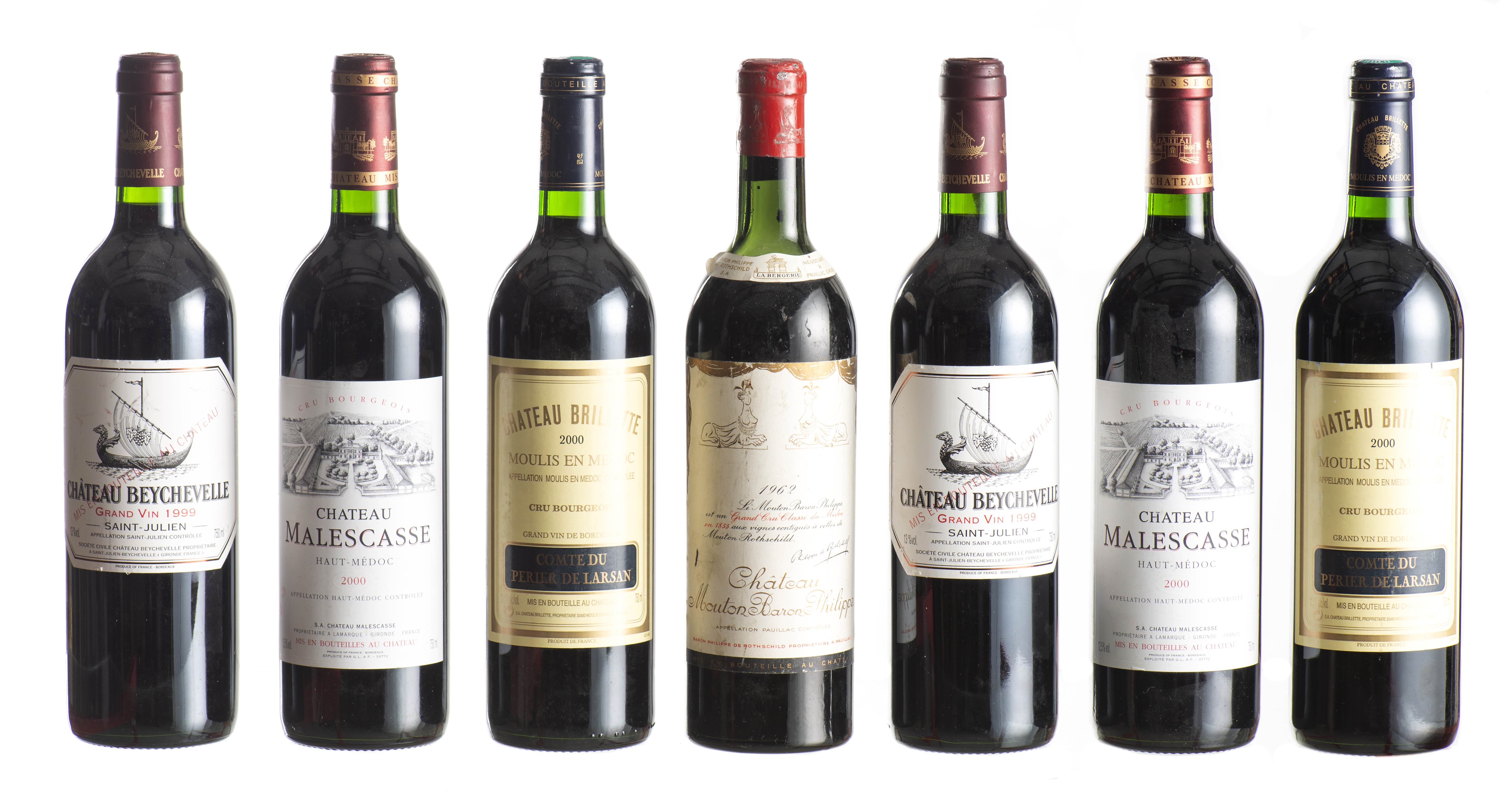 Assortiment de vins de châteaux, sept bouteilles 1962 - 1999 - 2000