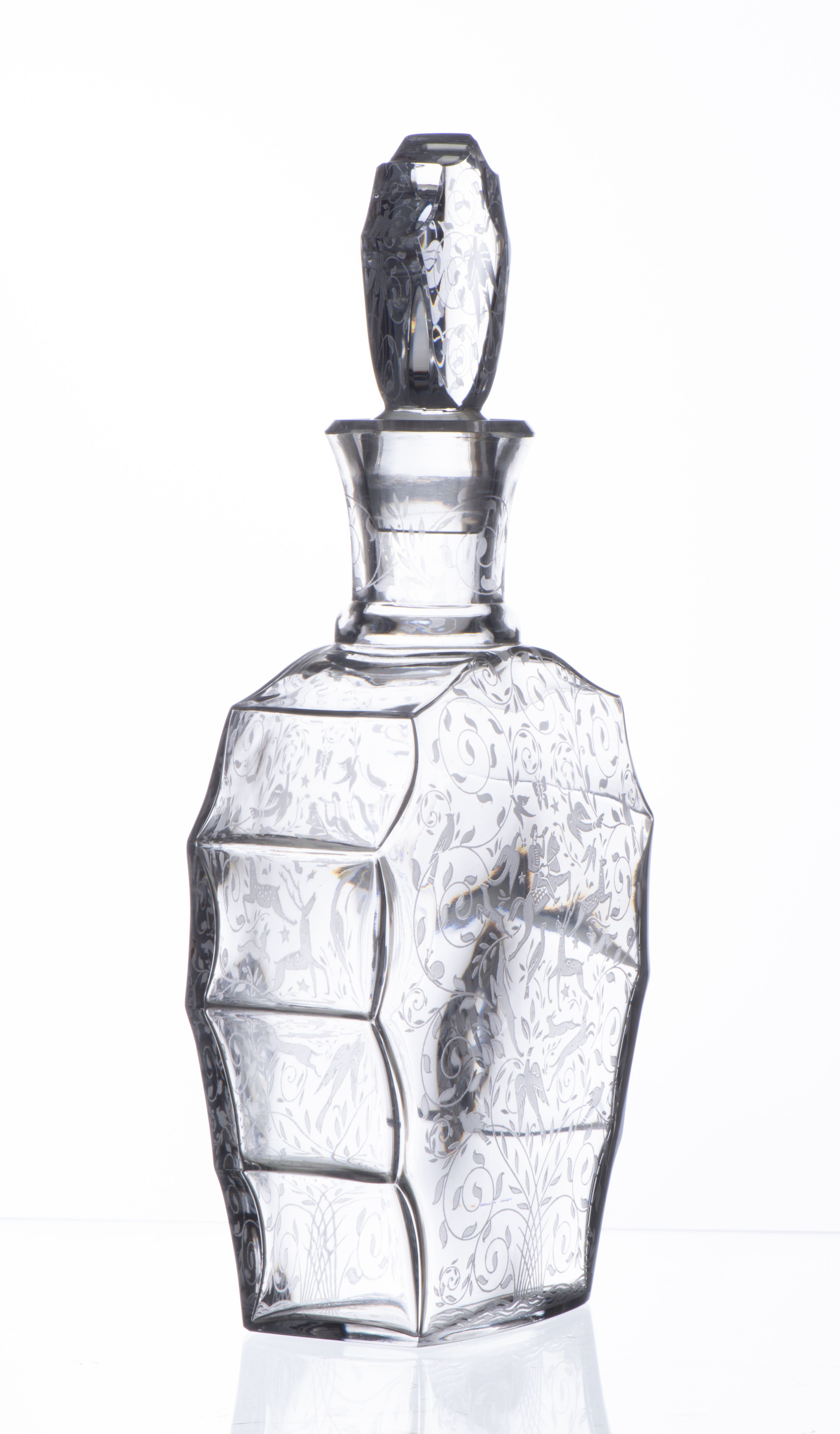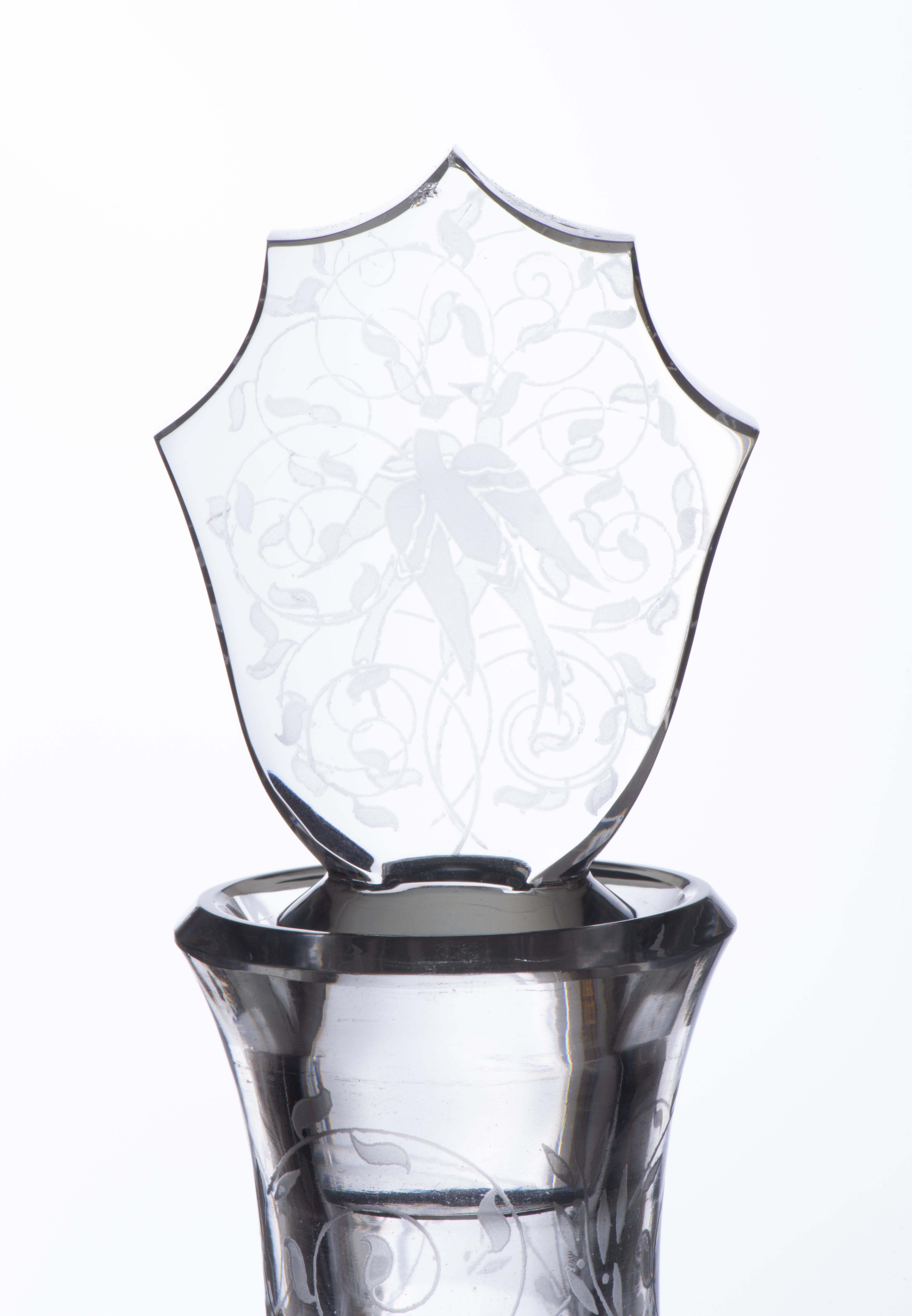BACCARAT, grande carafe en cristal gravé de rinceaux, avec son bouchon, cachet sous la base.