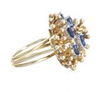 Bague en or jaune .585 figurant une branche de corail agrémenté de saphirs sertis à griffes en or gris
